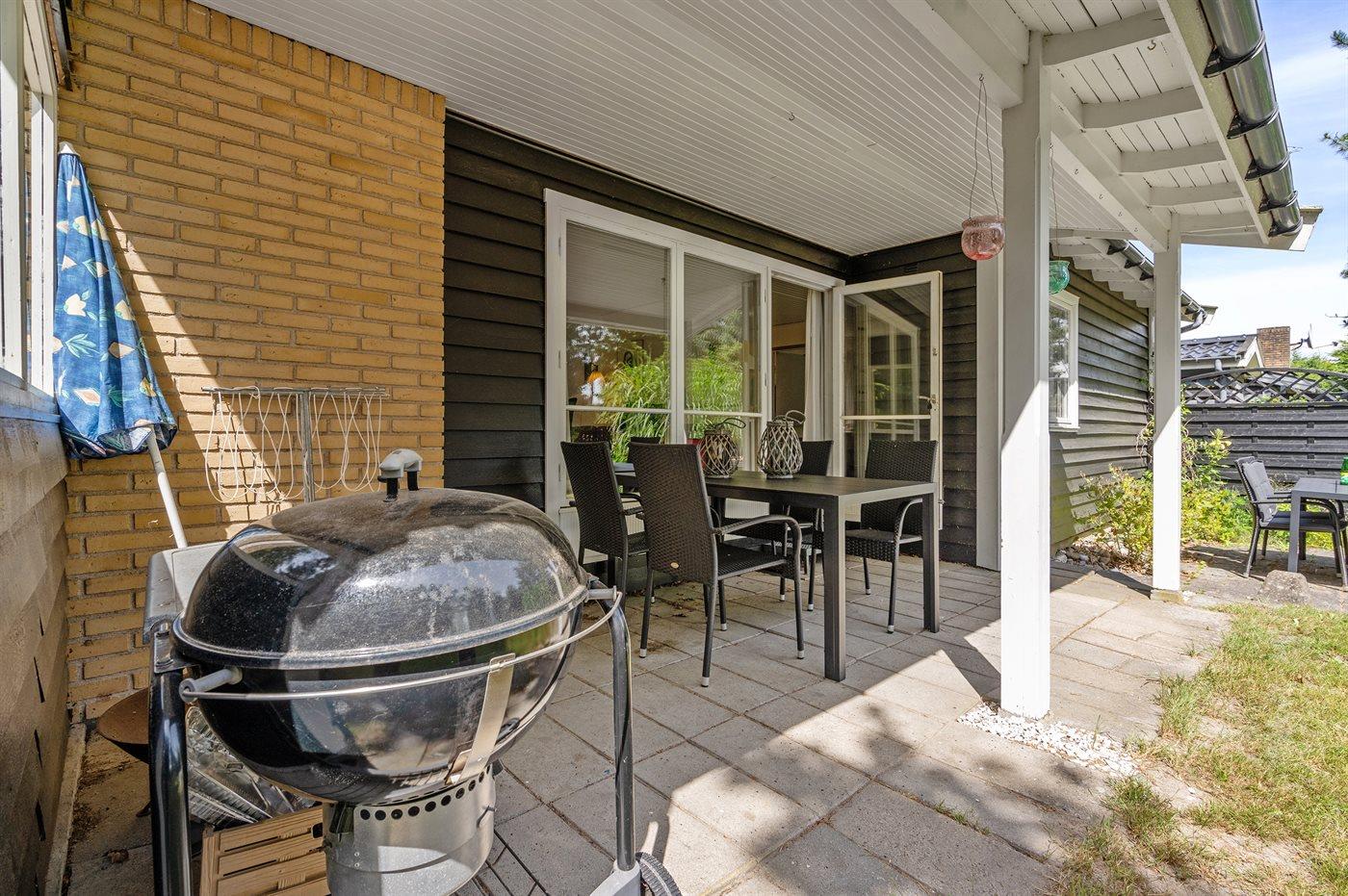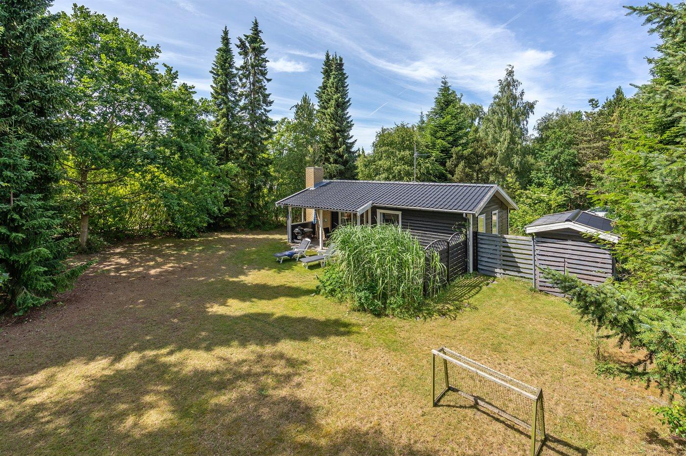 Ferieboligen er beliggende på en 1000 m² stor havegrund. Grunden er indhegnet. Der er 700 m til havet. Nærmeste forretning er beliggende i en afstand af 1500 m. Til ferieboligen hører 12 m² terrasseareal. Desuden er der 8 m² overdækket terrasse. Parkering ved ferieboligen.