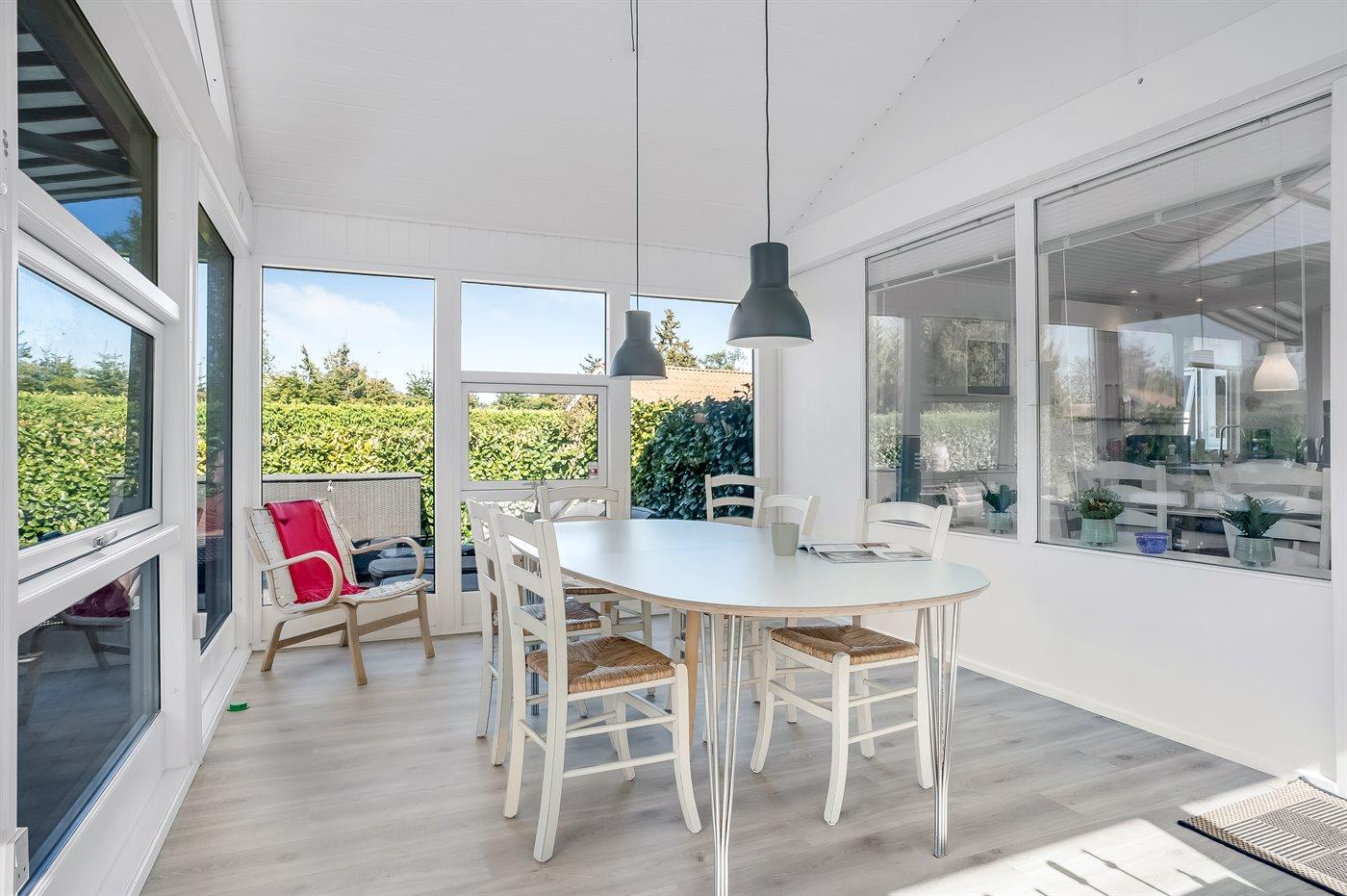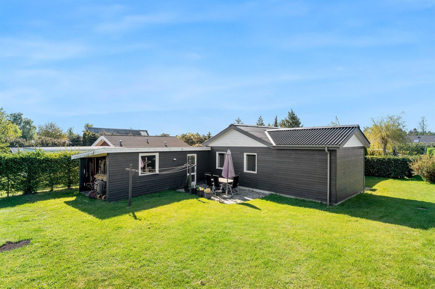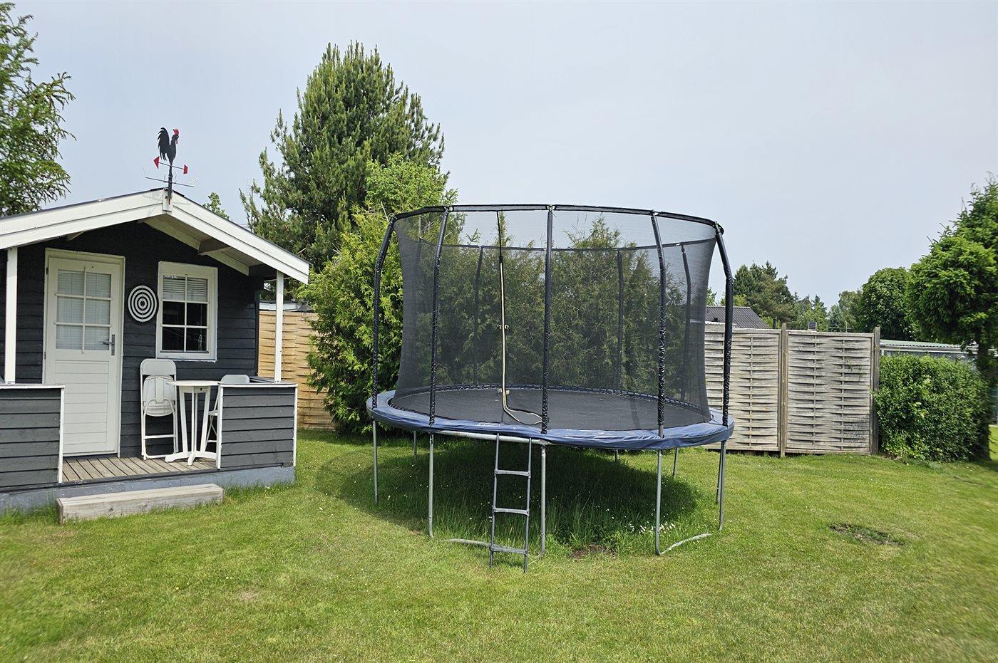 Ferieboligen er beliggende på en 1100 m² stor havegrund. Der er 600 m til havet. Nærmeste forretning er beliggende i en afstand af 600 m. Til ferieboligen hører åbent terrasseareal og en markise. Trampolin. Fodboldmål. Gasgrill står til rådighed. Der er carport til rådighed. Parkering ved ferieboligen.