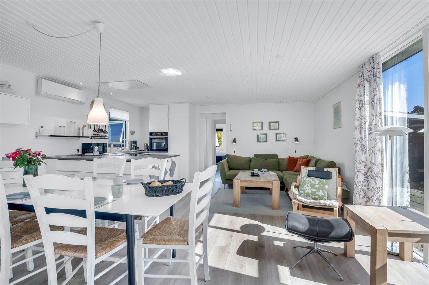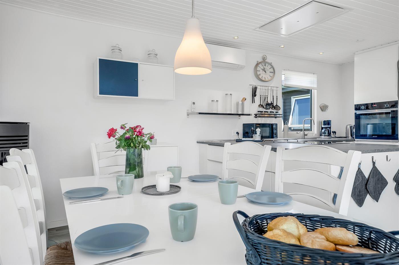 Køkkenet er udstyret med 1 køleskab. Der er 1 keramiske kogeplader, varmluftovn, mikrobølgeovn samt opvaskemaskine.