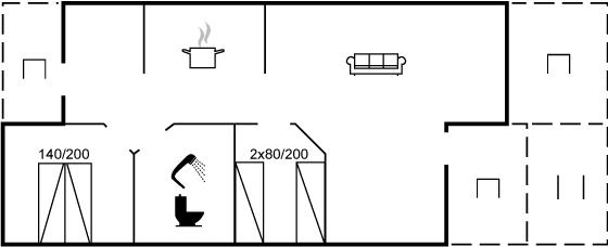 Der er i alt 2 soveværelser. Sovepladserne fordeler sig på: 2 sovepladser i dobbeltseng. 2 sovepladser i enkeltsenge. Derudover er der 1 stk. barneseng.