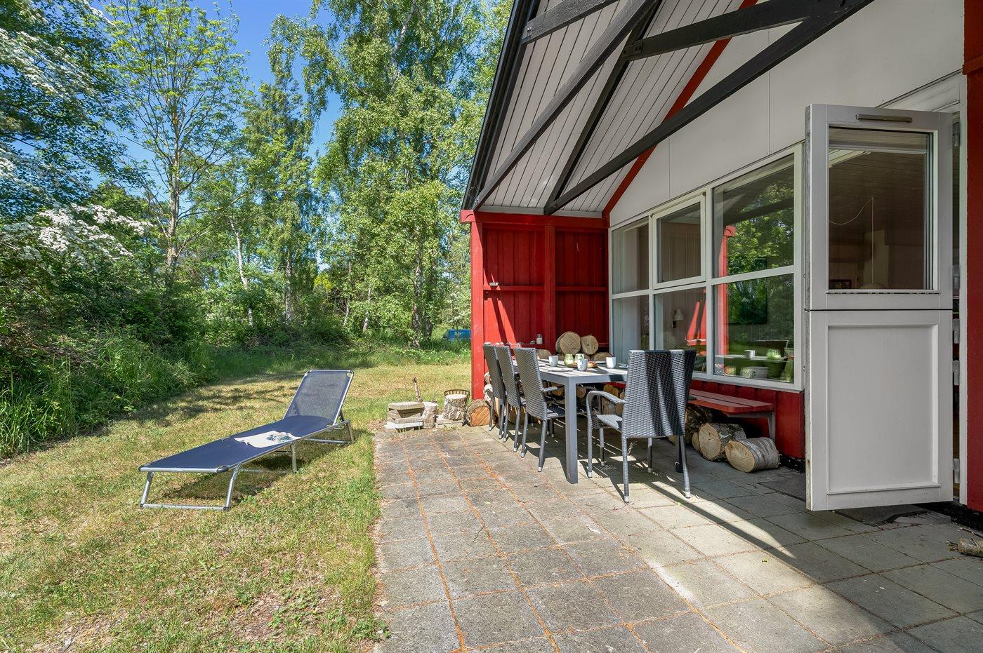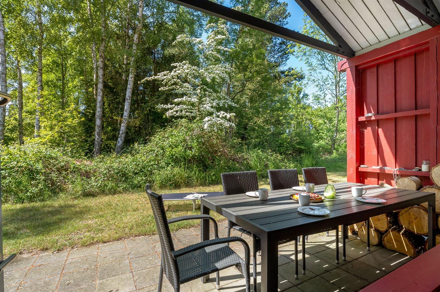Ferieboligen er beliggende på en 300 m² stor naturgrund. Der er 200 m til havet. Nærmeste forretning er beliggende i en afstand af 300 m. Til ferieboligen hører åbent terrasseareal. Desuden er der overdækket terrasse. Parkering ved ferieboligen.