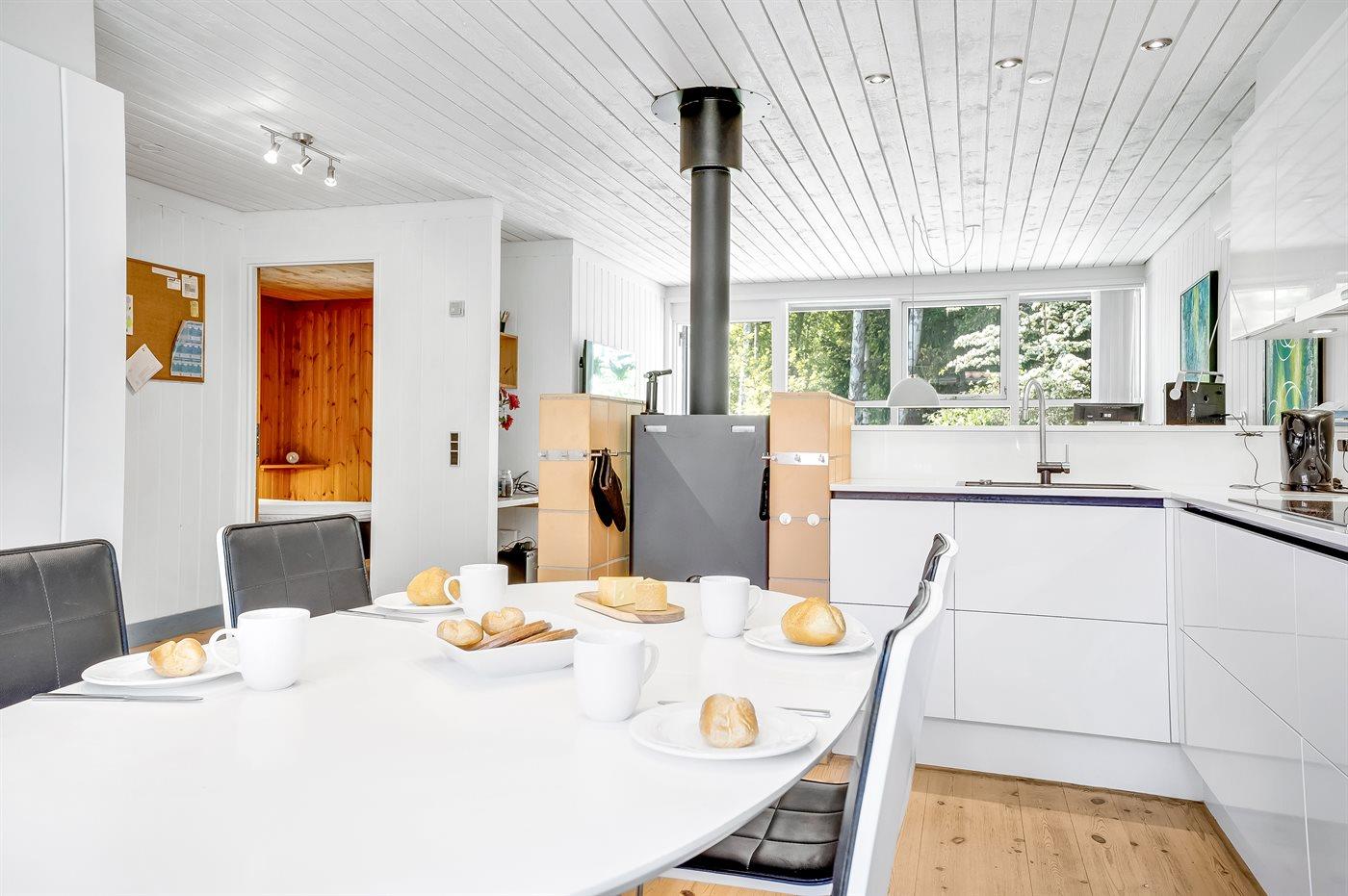 Køkkenet er udstyret med 1 amerikansk køleskab. Der er 4 induktionskogeplader, miniovn, varmluftovn, mikrobølgeovn samt opvaskemaskine.