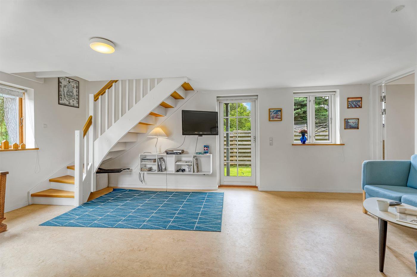Alt fremtræder indbydende og hyggeligt med opvarmede klinker via oliefyr, delvist lofter til kip og nogle dejlige lysindfald ind til huset.