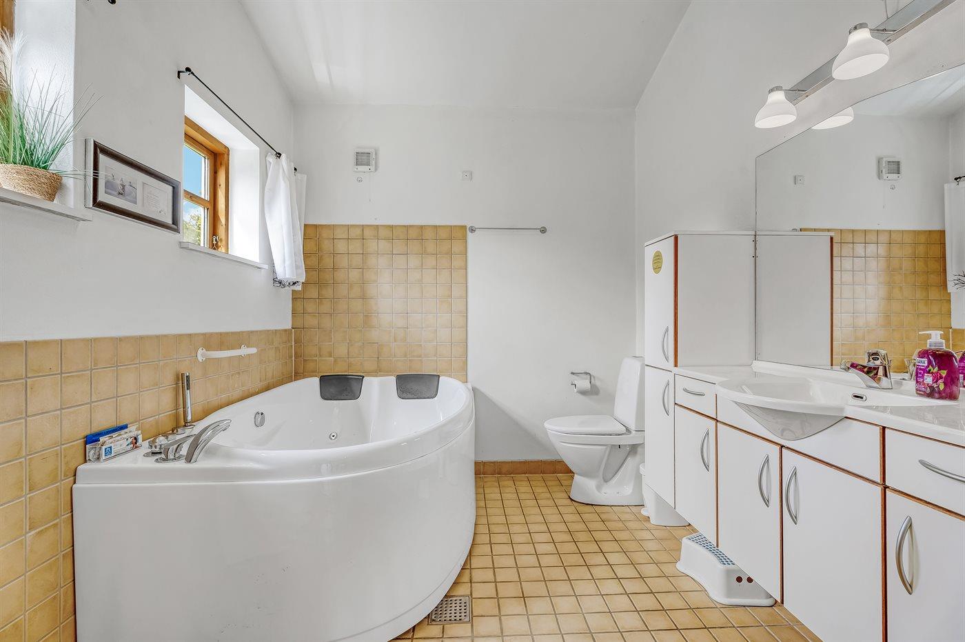 Der er 2 badeværelser med bruseniche og 4 toiletter, heraf 2 gæstetoiletter. Der er gulvvarme på 2 badeværelser. Der er gulvvarme på 2 gæstetoiletter.