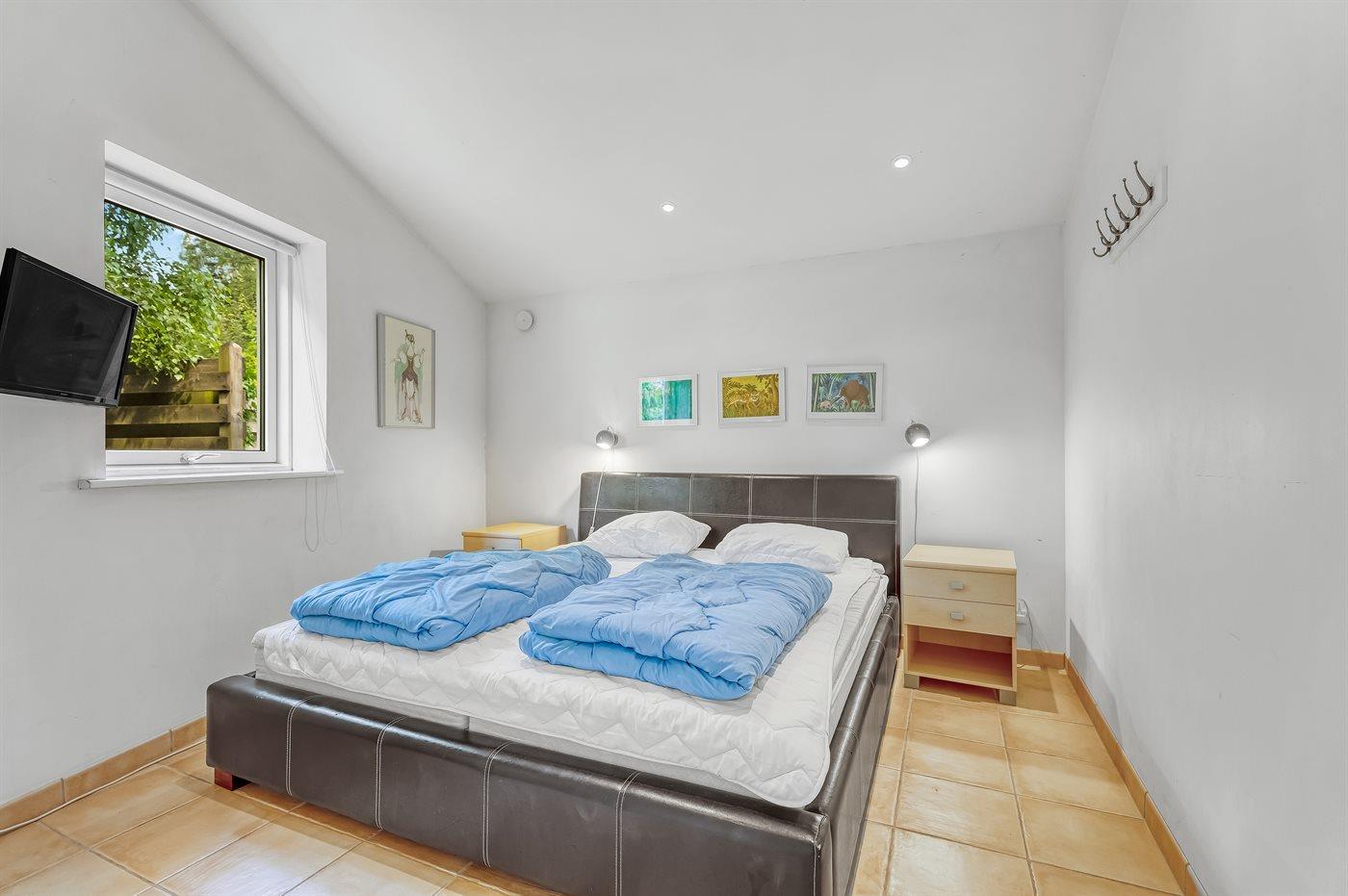 Selve hovedhuset er opdelt i flere afdelinger. Den ene afdeling rummer fordelingsgang til 2 soveværelser med udgang til haven og et badeværelse med bl.a. bruseniche. Her kan en dør åbnes ind til rummelig opholds- og spisestue med tv, pool-afdeling med bruseniche, soveværelse og gæstetoilet.