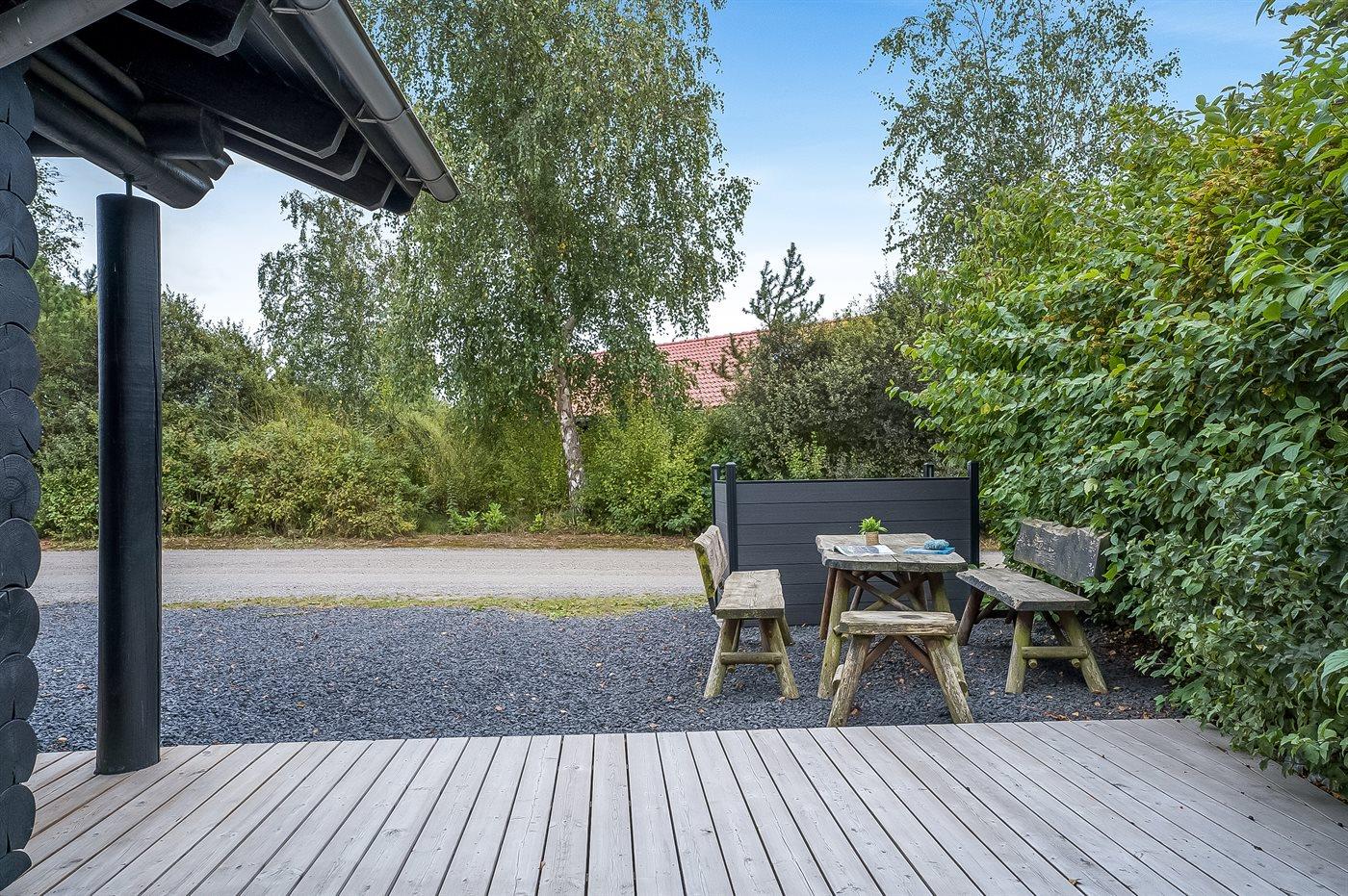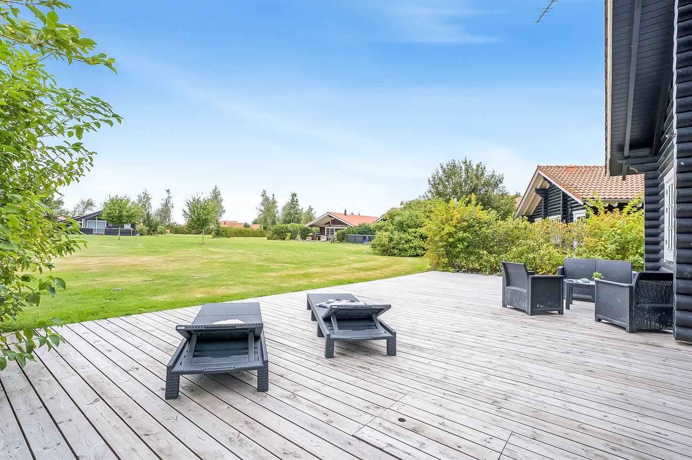 Ferieboligen er beliggende på en 370 m² stor naturgrund. Der er 900 m til havet. Der er en sø i en afstand af 100 m. Nærmeste forretning er beliggende i en afstand af 400 m. Der er en golfbane i en afstand af 400 m. Til ferieboligen hører 110 m² terrasseareal. Desuden er der 12 m² overdækket terrasse. Der er redskabsrum. Der ligger en legeplads i en afstand af 200 m. Grill til rådighed. Parkering ved ferieboligen.