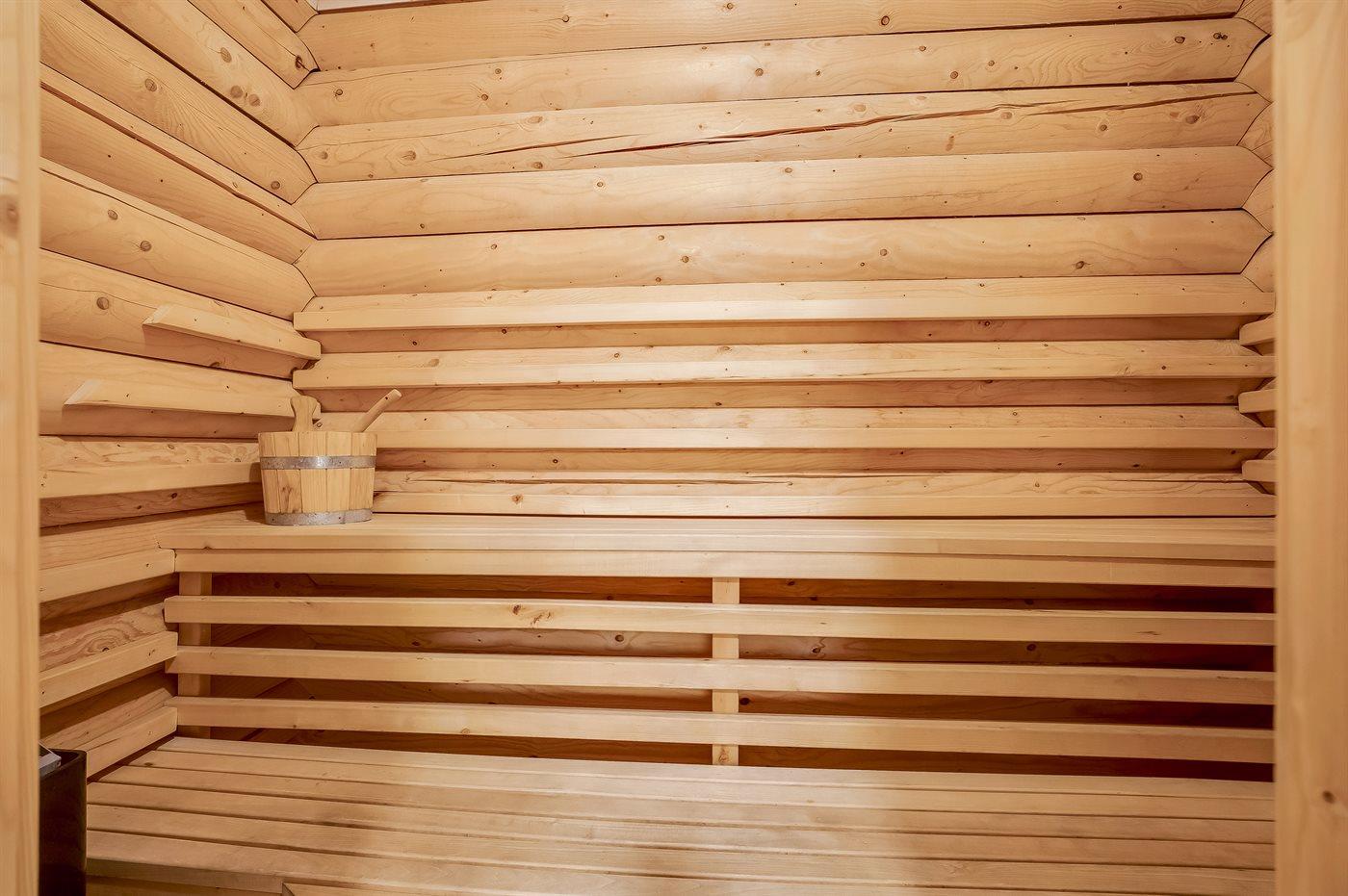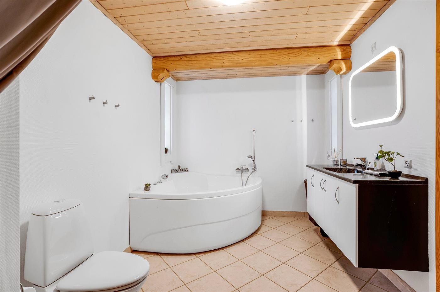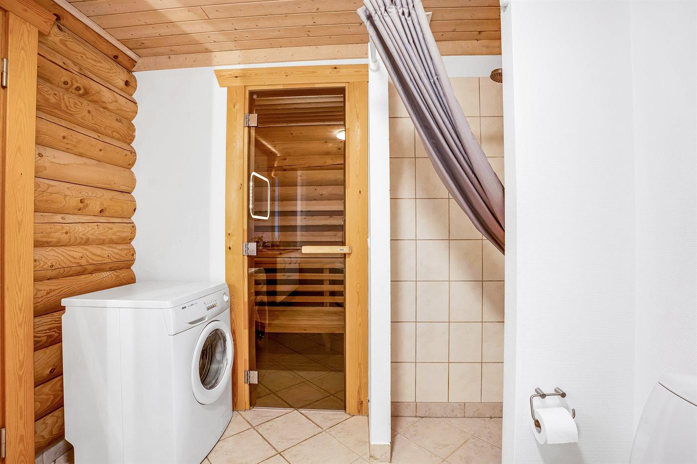 Der er 2 badeværelser med bruseniche og 2 toiletter. Der er gulvvarme på 2 badeværelser. I saunaen er der mulighed for afslapning.