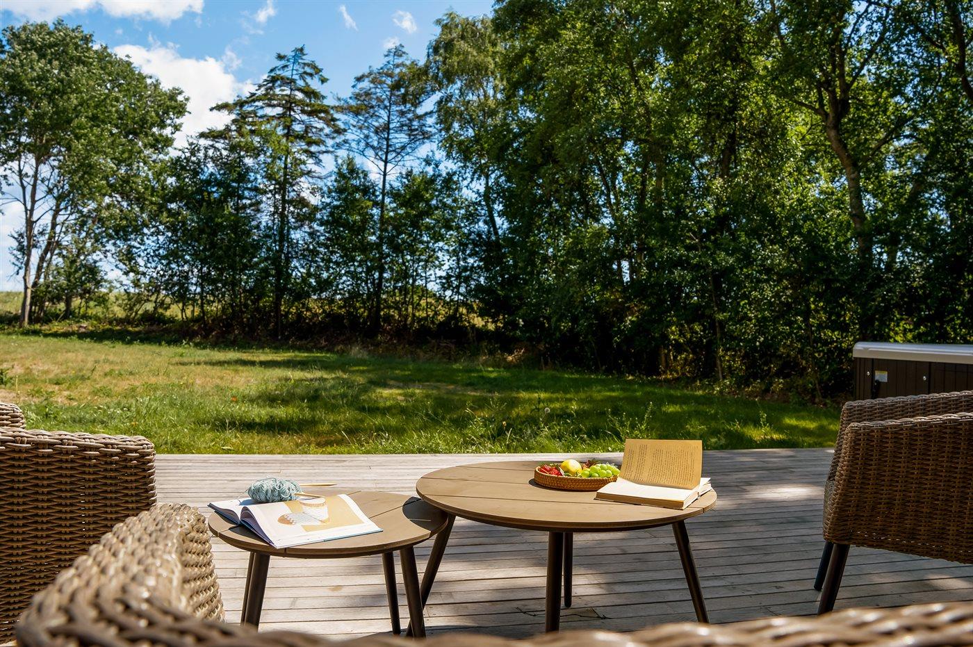 Der er mulighed for afslapning i udendørs standvandsspa til 6 personer.