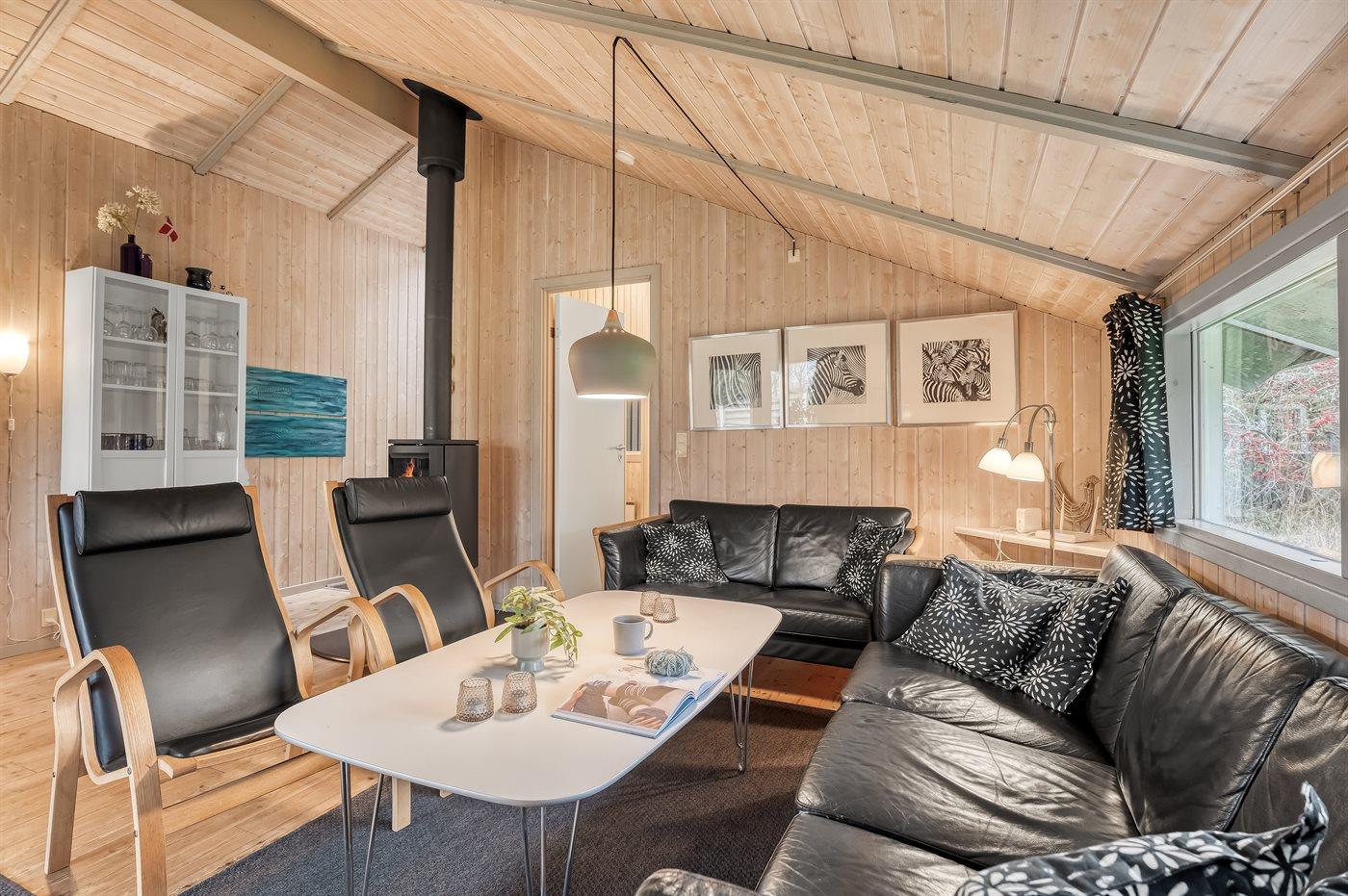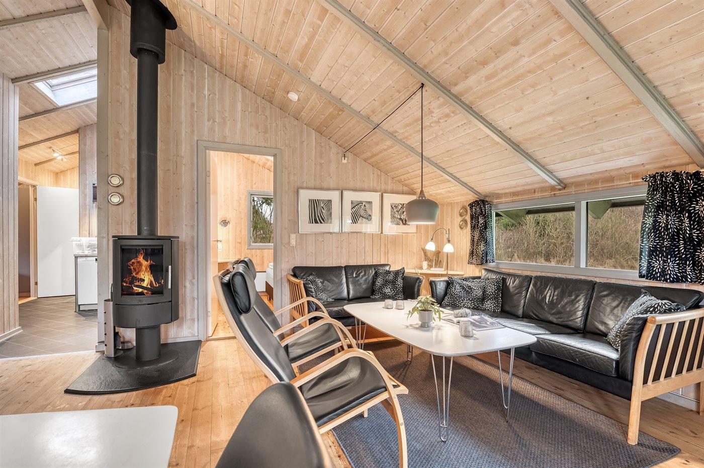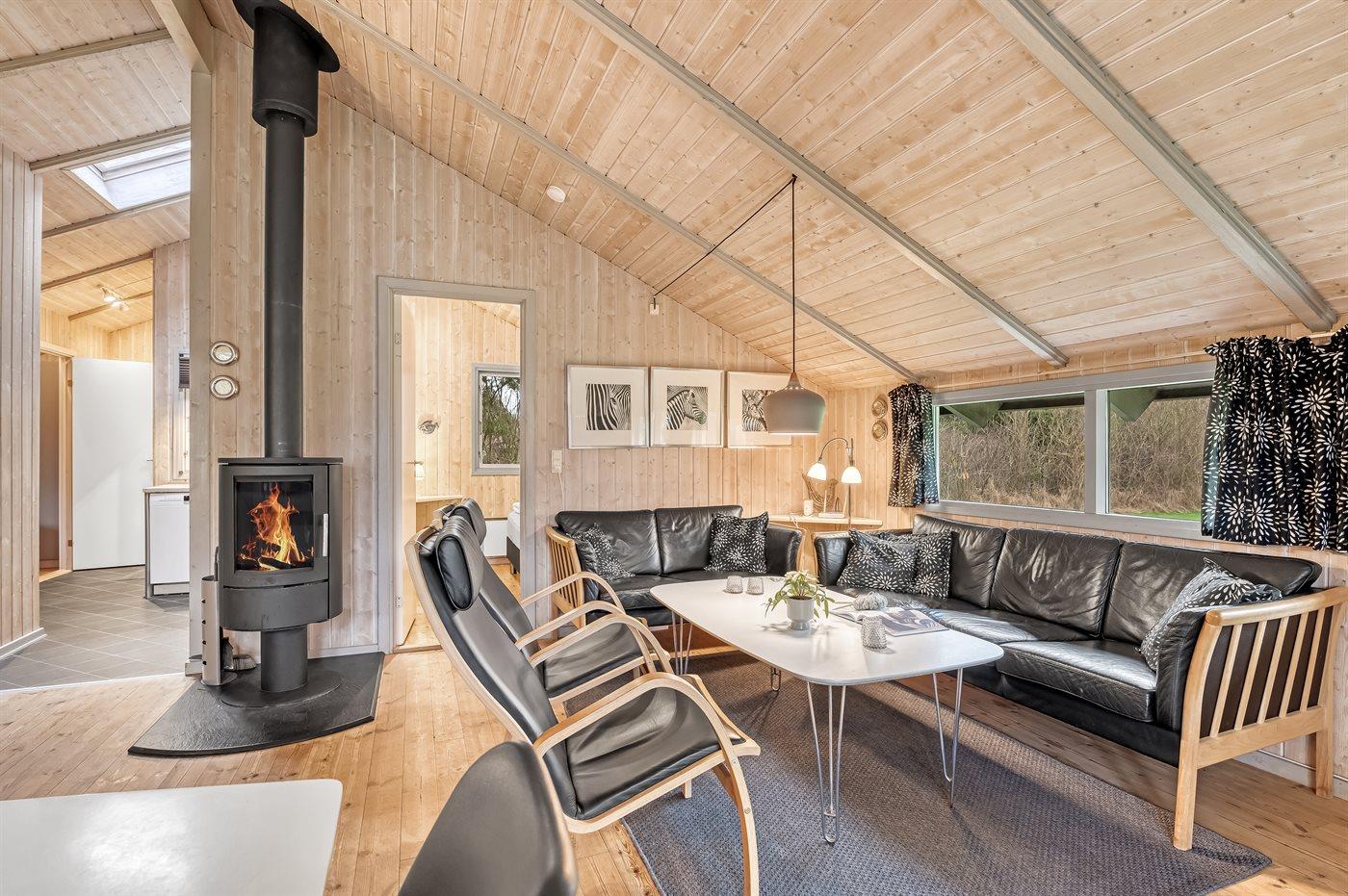 Huset ligger på en tilplantet naturgrund med ugenert solgård samt dejlig terrasse med havemøbler. Det store indbydende badeværelse med opvarmet marmorgulv er indrettet med 2-pers. spa, bruseniche, vaskemaskine og direkte adgang til husets sauna. Desuden gæstetoilet. Dejligt køkken med køle/ frys opvaskemaskine og mikrobølgeovn. Flot møbleret opholdsstue, brændeovn, 65 tommer smart TV, Sony Playstation, Bluetooth højtaler, trådløs fiber internetforbindelse (egen computer skal medbringes). 4 soverum; 2 med dobbelt kontinentalsenge, 1 med 2 enkeltsenge og 1 med dobbeltseng (bredde 140 cm). Der er barneseng, høj barnestol, gynge og sandkasse. Huset er udstyret med solvarmeanlæg.