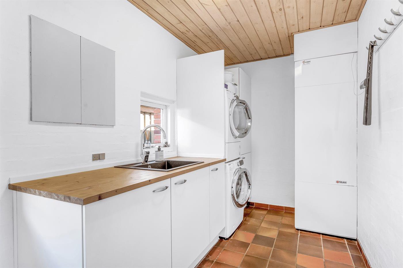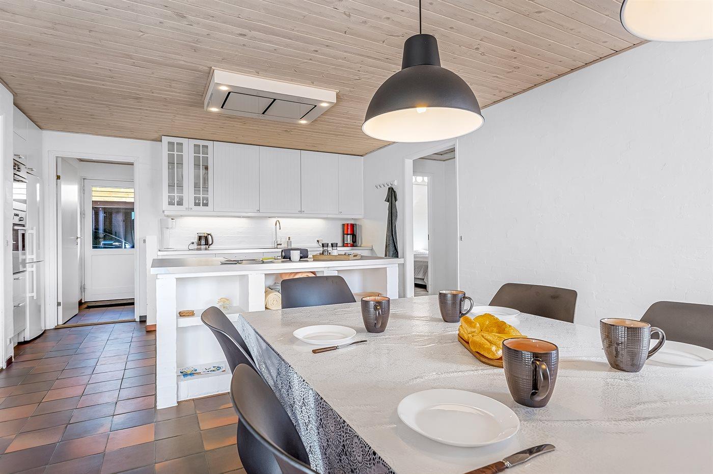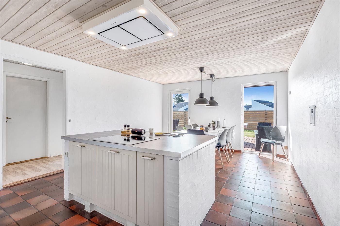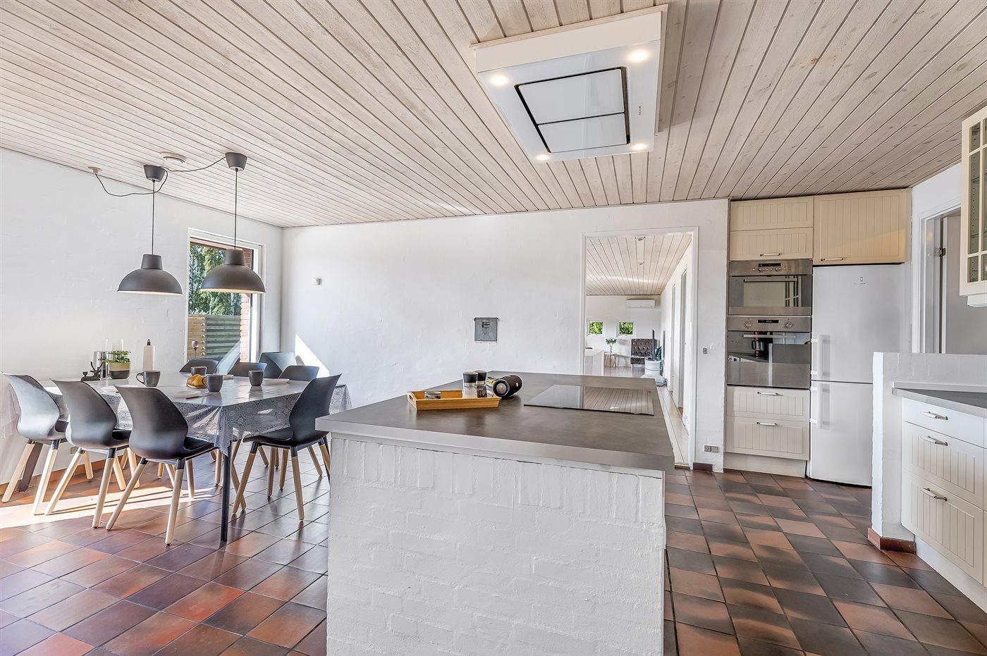 Køkkenet er udstyret med 1 køleskab. Der er 4 induktionskogeplader, varmluftovn, mikrobølgeovn samt opvaskemaskine Der er gulvvarme i køkkenet.