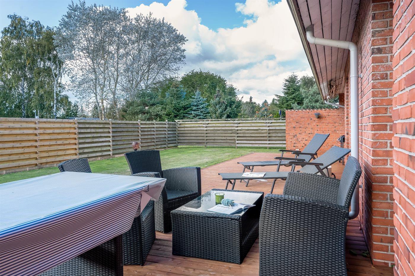 Ferieboligen er beliggende på en 985 m² stor naturgrund. Der er 500 m til havet. Der er en badebro i nærheden. Nærmeste forretning er beliggende i en afstand af 200 m. Der er en golfbane i en afstand af 1500 m. Til ferieboligen hører åbent terrasseareal. Der er redskabsrum. Bålsted. Grill til rådighed. Der er carport til rådighed. Parkering ved ferieboligen.
