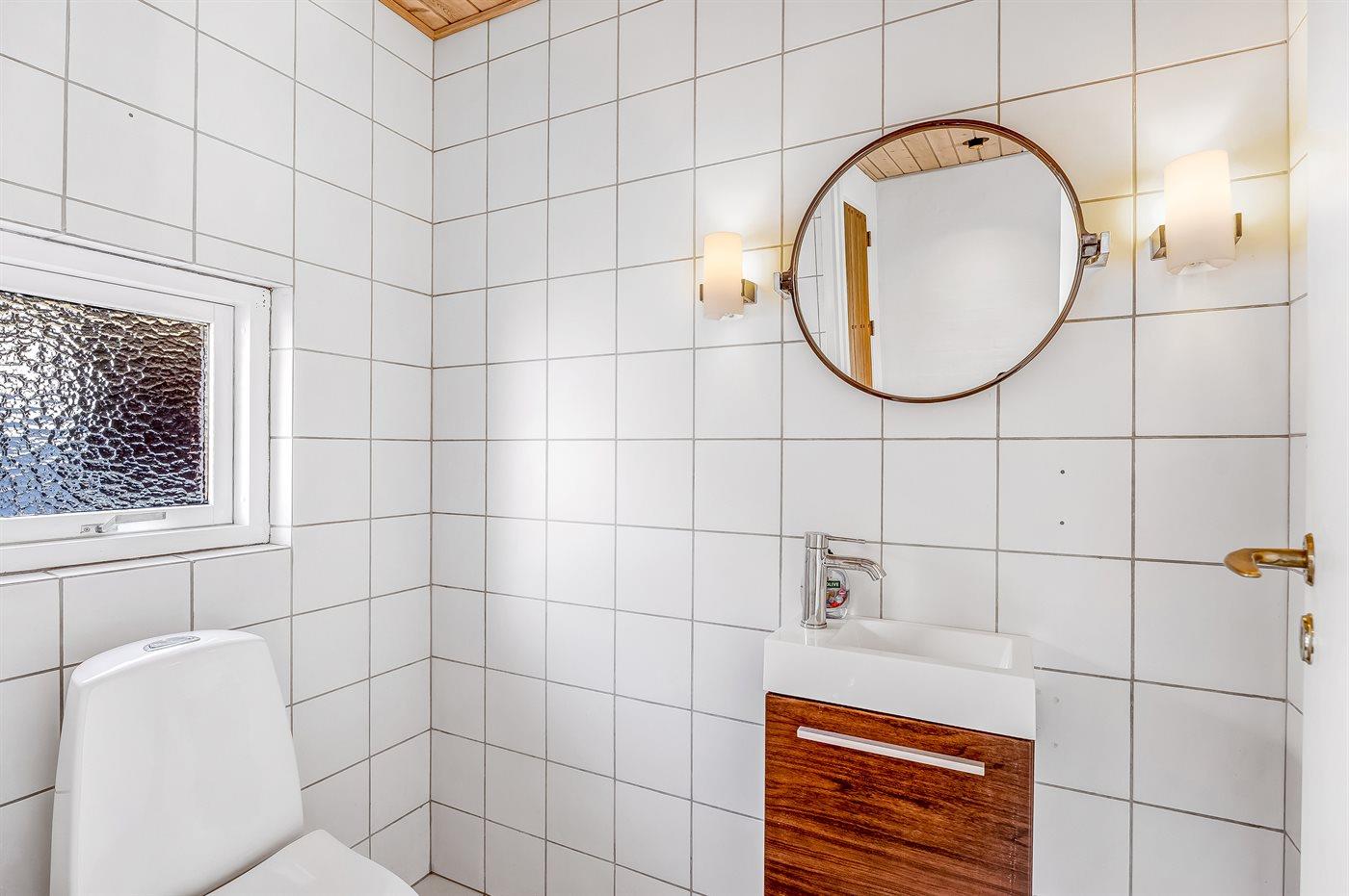 Der er 2 badeværelser med bruseniche og 3 toiletter, heraf 1 gæstetoilet. Der er gulvvarme på 2 badeværelser. Der er gulvvarme på gæstetoilettet.