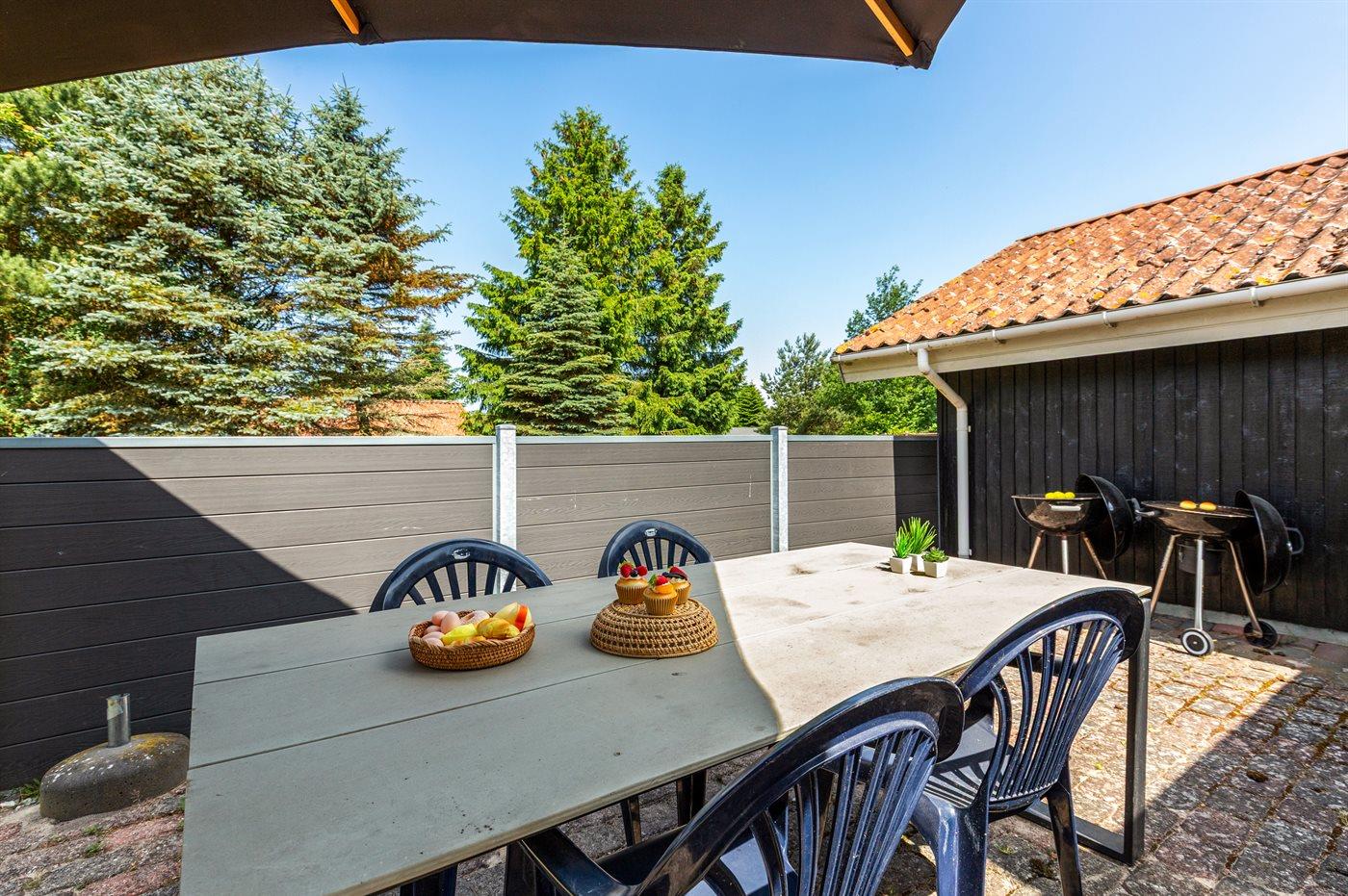 Ferieboligen er beliggende på en 1205 m² stor naturgrund. Der er 50 m til havet. Nærmeste forretning er beliggende i en afstand af 900 m. Til ferieboligen hører åbent terrasseareal. Sandkasse. Grill til rådighed. Parkering ved ferieboligen.