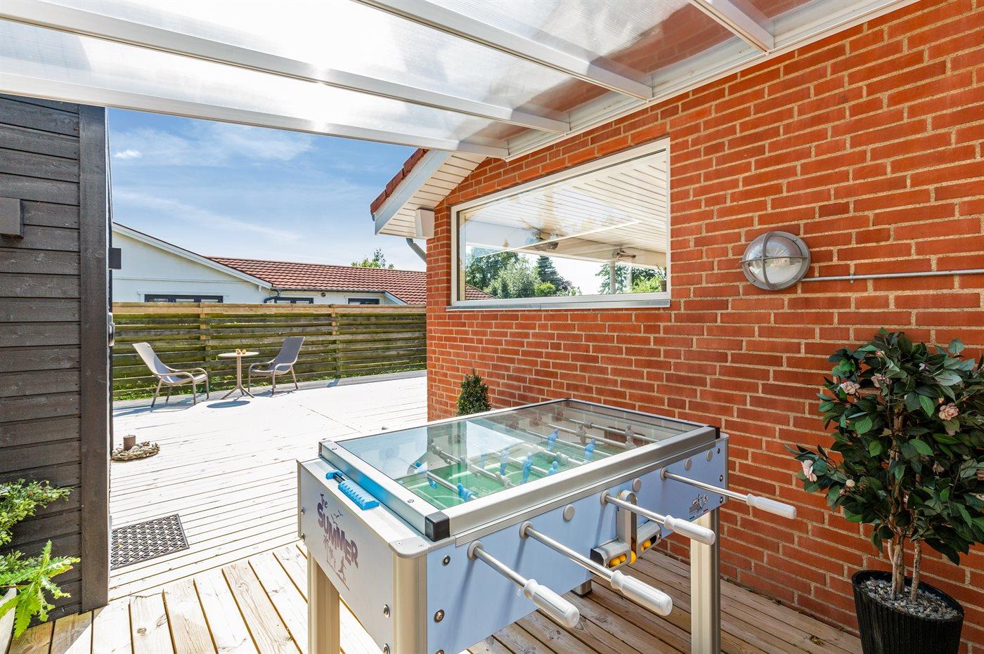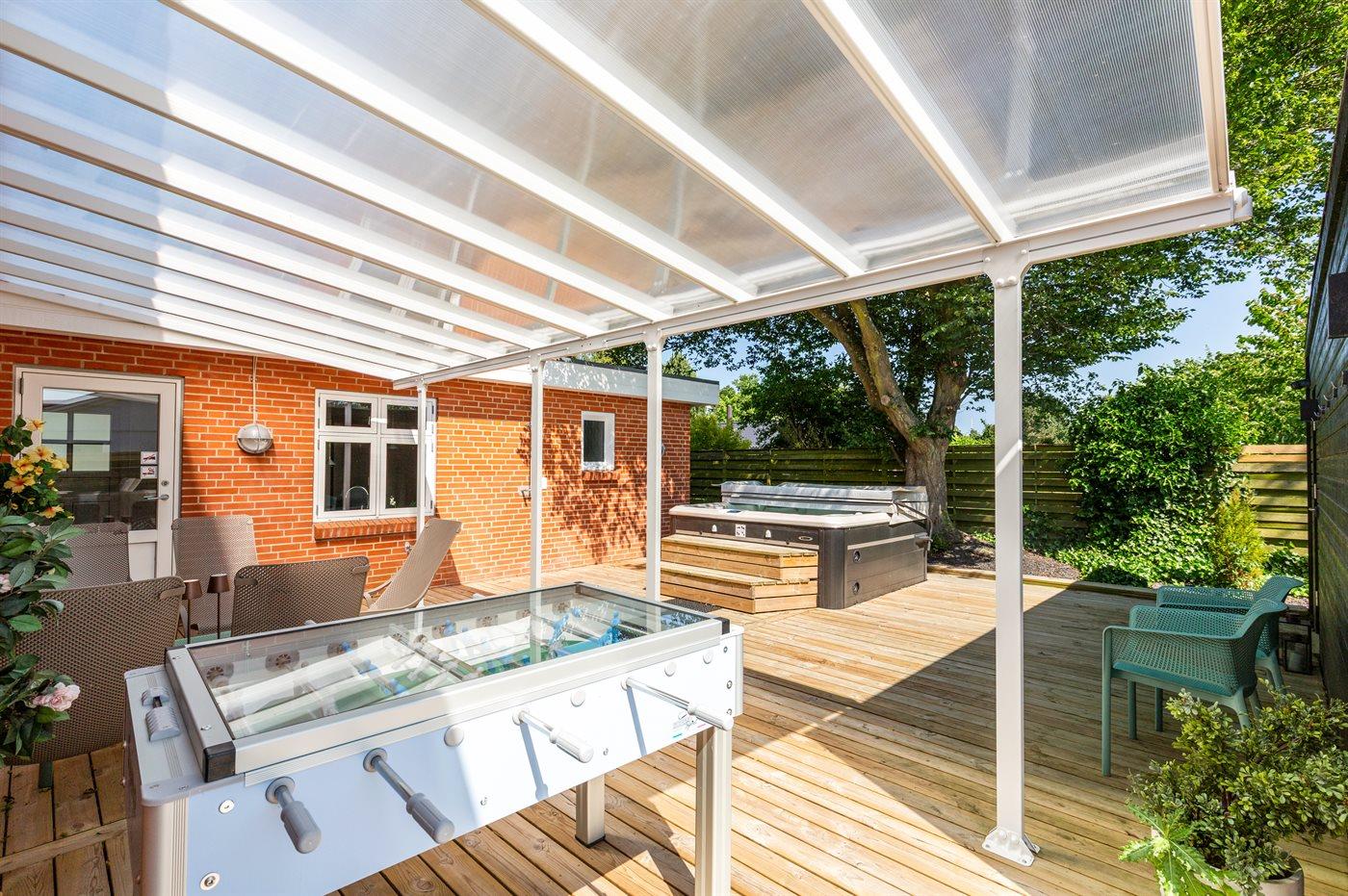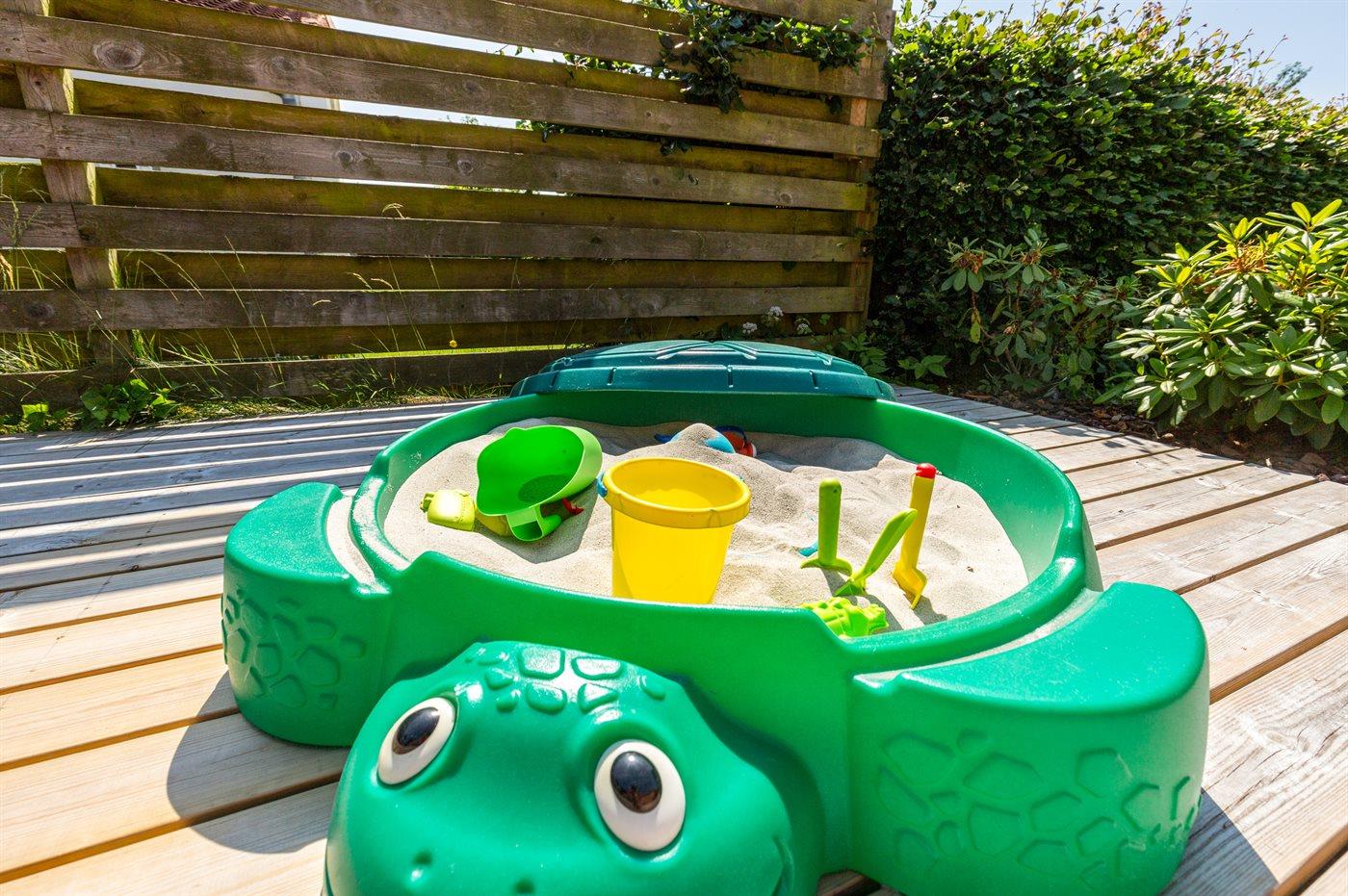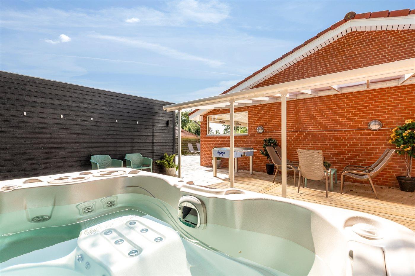 Børnene vil elske bordfodbold på den overdækkede terrasse, og den store indhegnede naturgrund giver rig mulighed for leg og eventyr, med en sandkasse til de yngste. Da grunden er indhegnet, er stedet også ideelt til familiens firbenede medlemmer. Wellness-området er det ideelle sted at slappe af i loungemøblerne og nyde det udendørs spabad, sauna og udebruser med varmt og koldt vand.