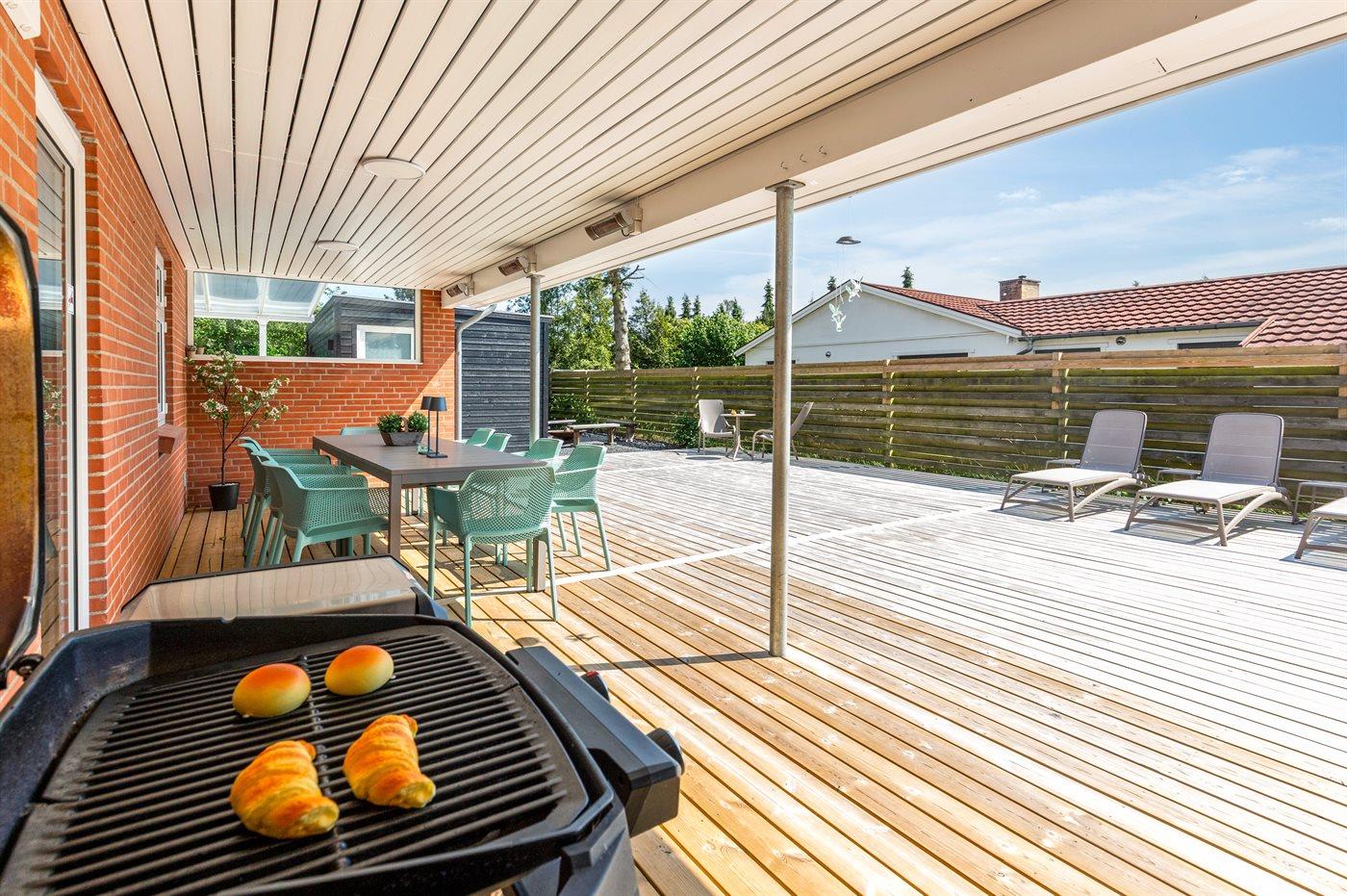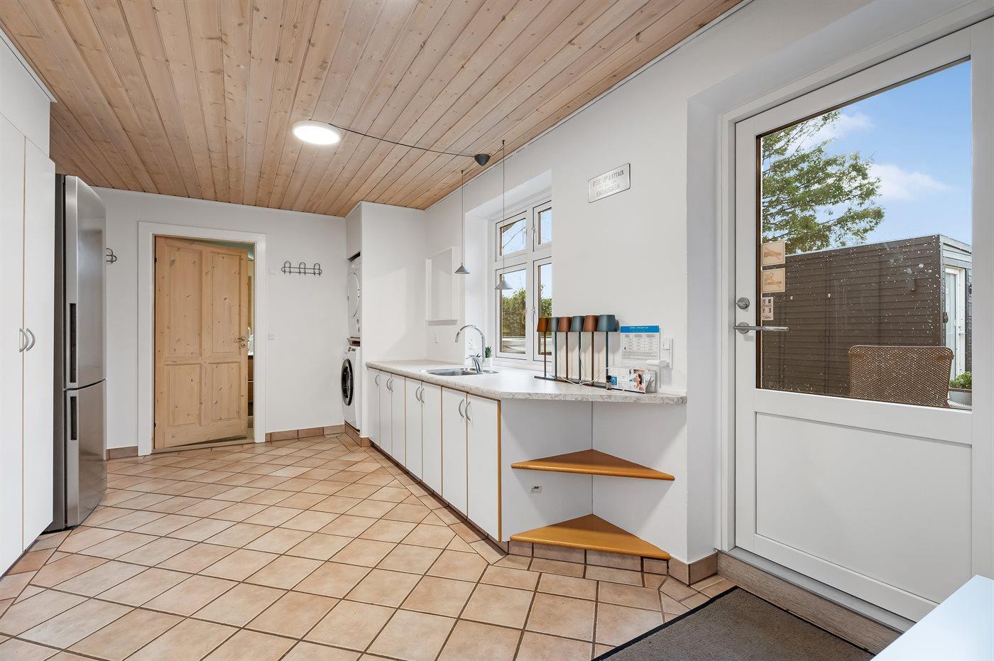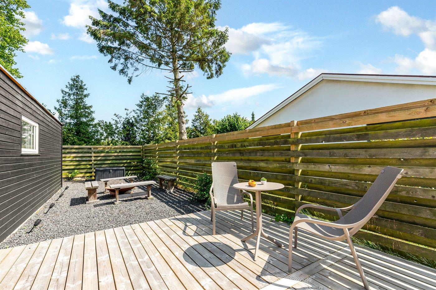 Desuden har sommerhuset et dejligt bryggers med bl.a. pusleplads til de mindste. Der er gulvvarme og energivenlig luft/vand varmepumpe i hele huset. Den store træterrasse er perfekt til at nyde solen i havemøbler eller på solvognene, mens den overdækkede terrasse inviterer til hyggelige grillaftener.