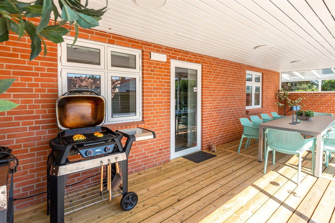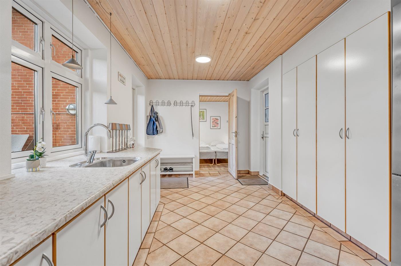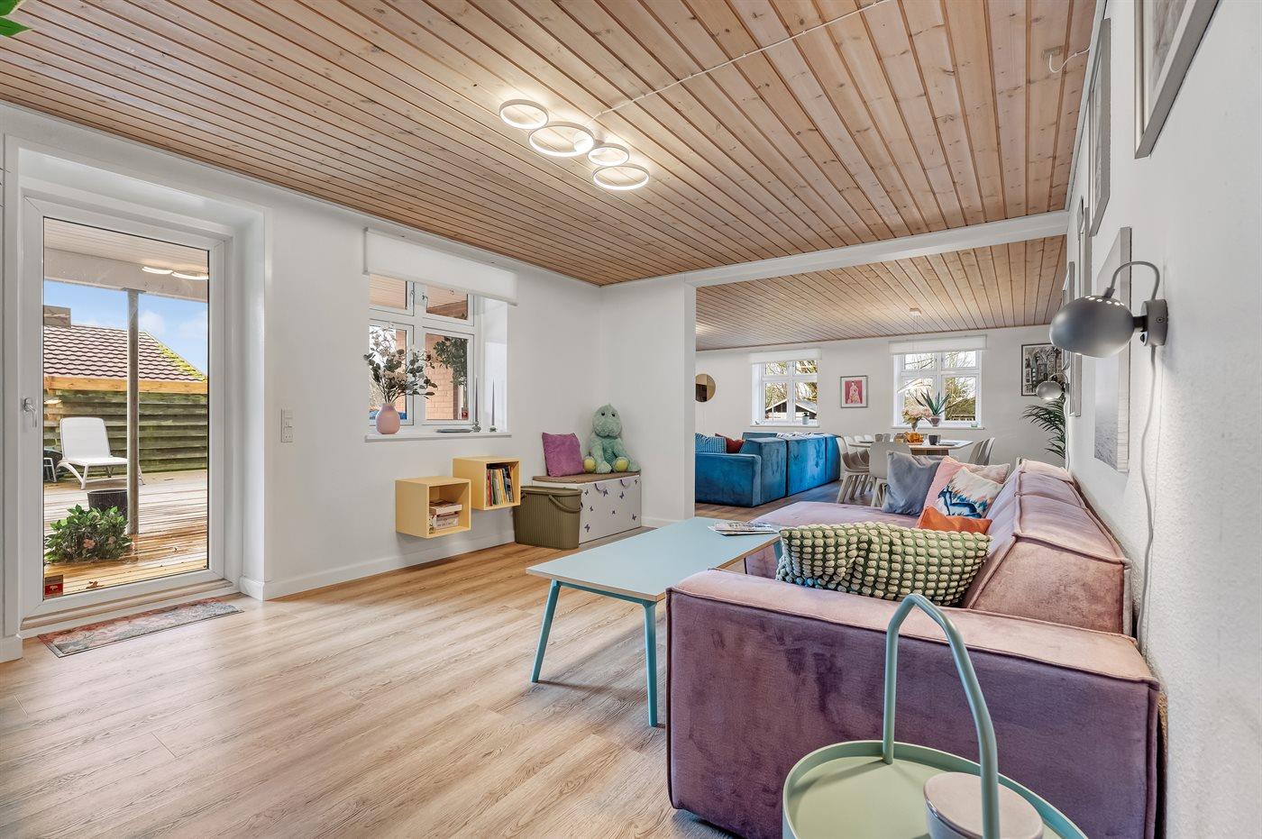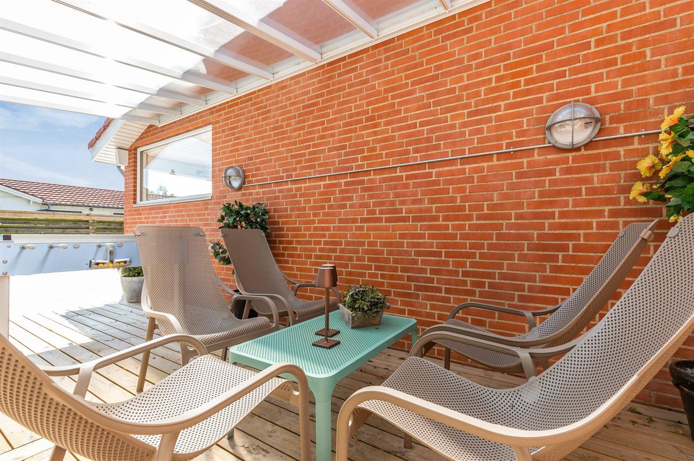 Desuden har sommerhuset et dejligt bryggers med bl.a. pusleplads til de mindste. Der er gulvvarme og energivenlig luft/vand varmepumpe i hele huset. Den store træterrasse er perfekt til at nyde solen i havemøbler eller på solvognene, mens den overdækkede terrasse inviterer til hyggelige grillaftener.