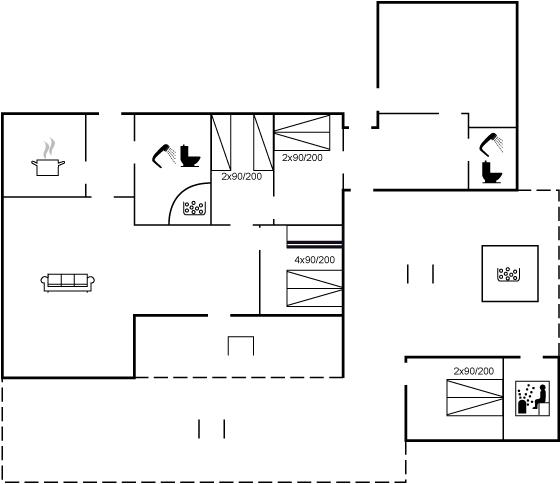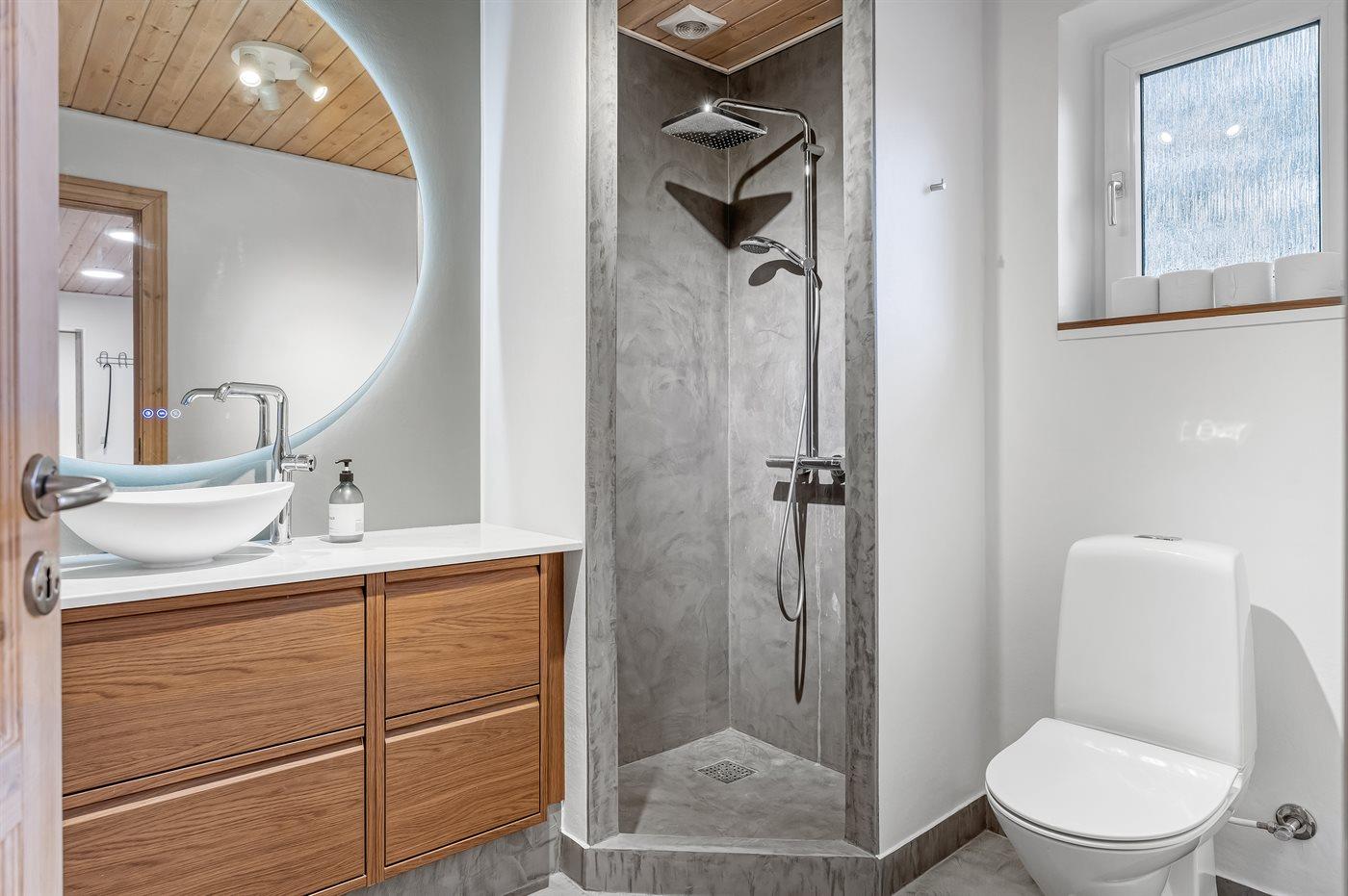 Der er 2 badeværelser med bruseniche og 2 toiletter. Der er gulvvarme på 2 badeværelser.. Badekar.