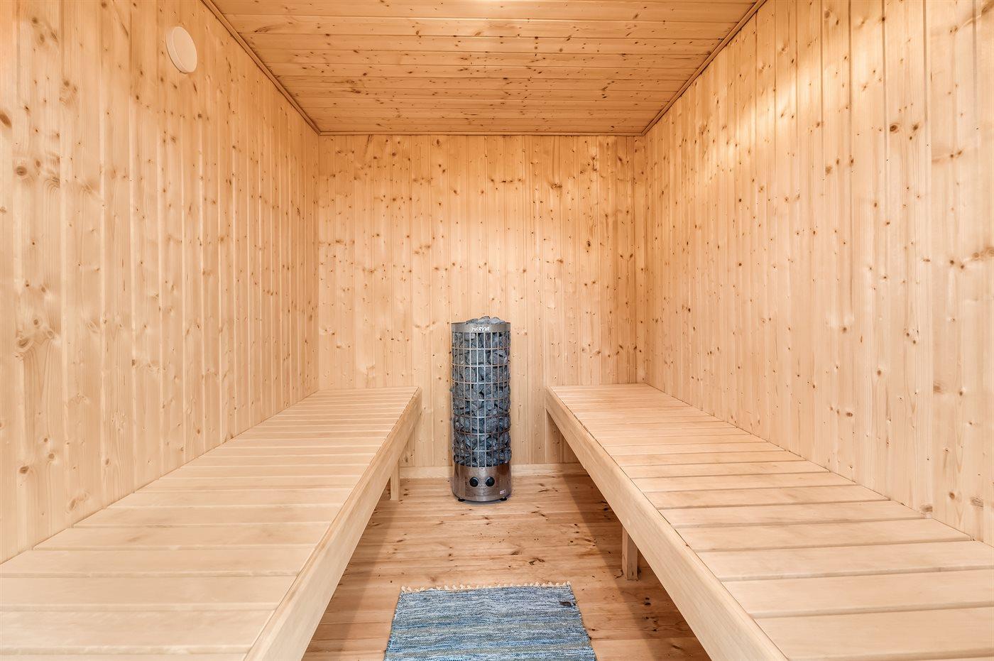 De to badeværelser er stilfuldt indrettet, og det ene har endda et hjørnebadekar til ekstra luksus. Udenfor kan du forkæle dig selv med et udendørs spabad og saunahytte, mens aktivitetsrummet tilbyder timevis af underholdning. Du skal medbringe egne kanaler og login til de forskellige apps på husets Smart-TV.