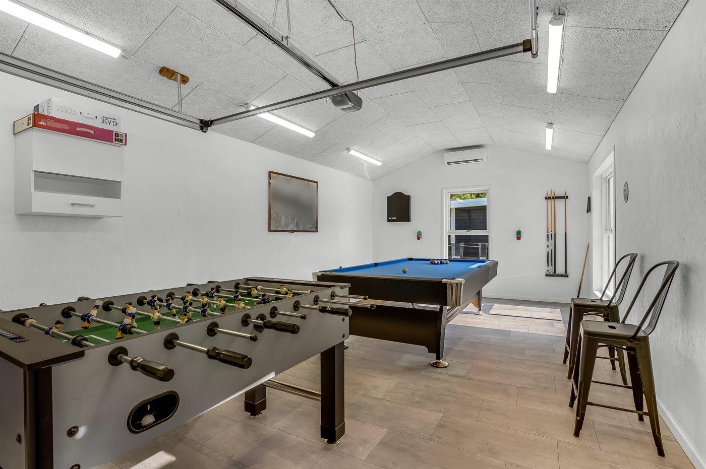 I aktivitetsrummet er der følgende udstyr: Billard. Poolbord. Dart. Bordfodbold.
