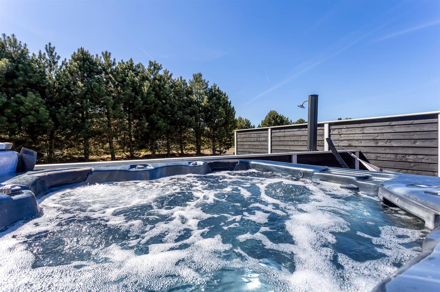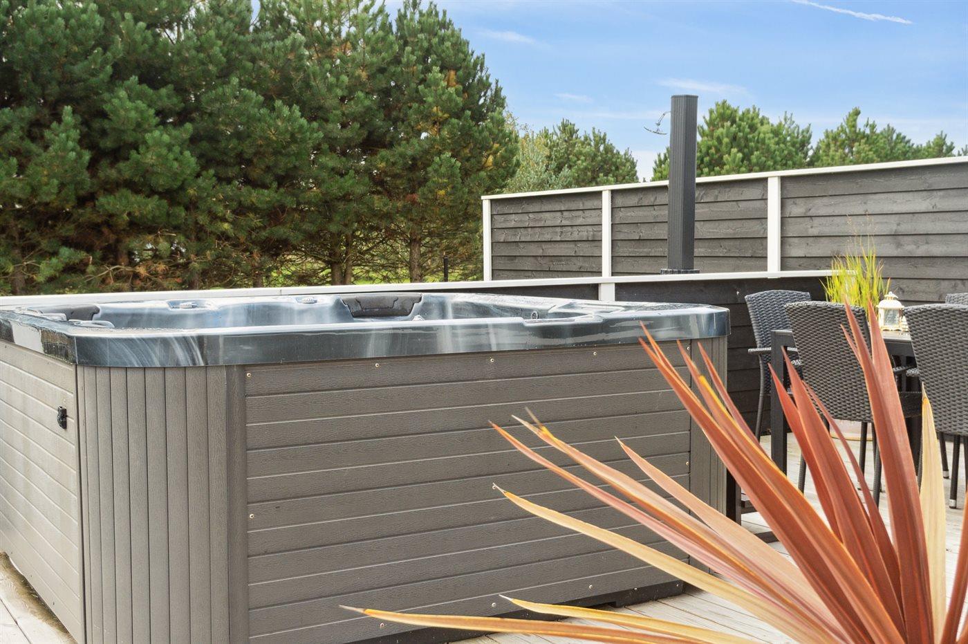 Der er mulighed for afslapning i udendørs standvandsspa til 6 personer.
