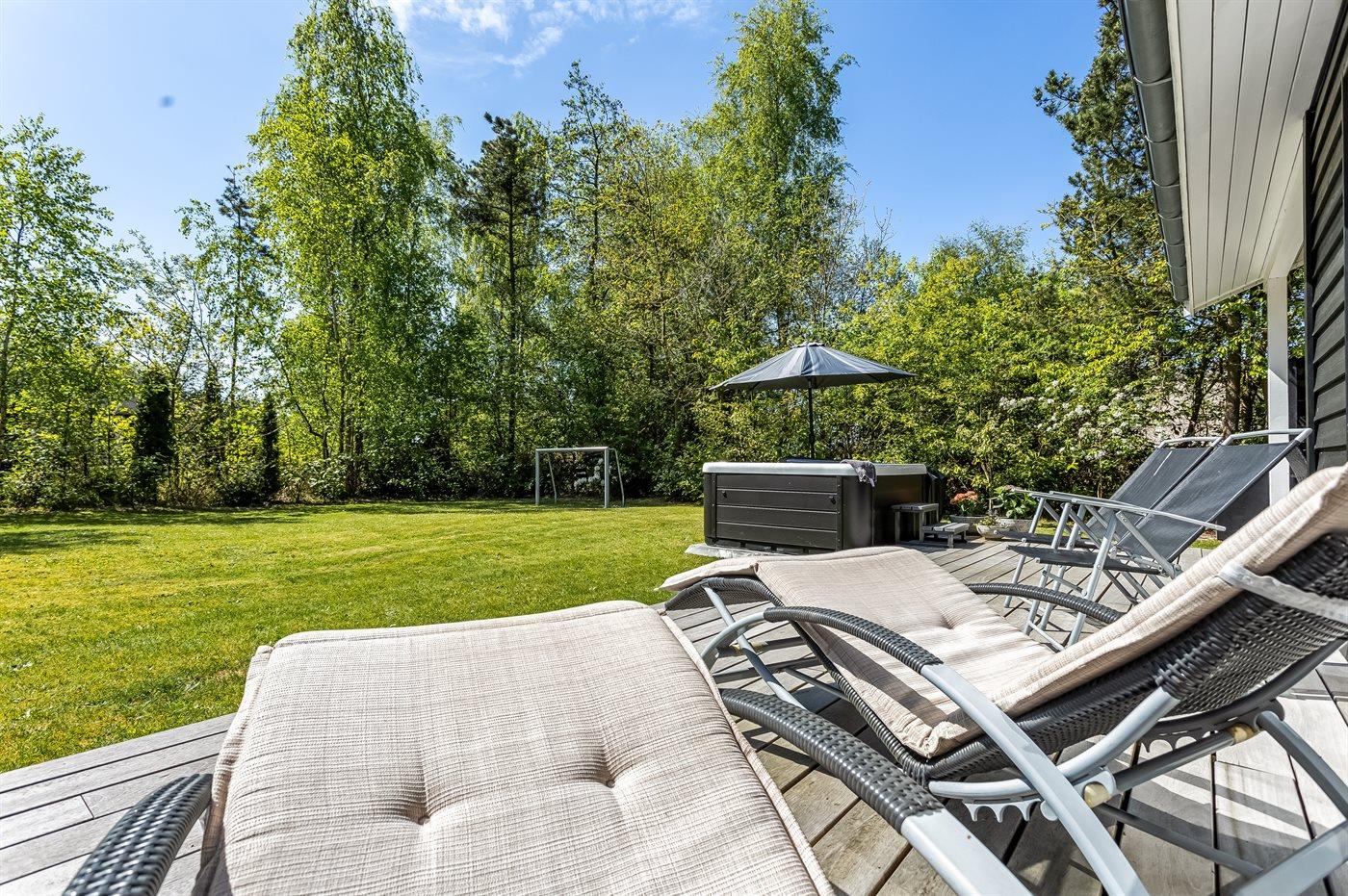 Ferieboligen er beliggende på en 1000 m² stor naturgrund. Grunden er indhegnet. Der er 1100 m til havet. Til ferieboligen hører åbent terrasseareal. Desuden er der overdækket terrasse. Gynge. Fodboldmål. Udendørs bruser. Grill til rådighed. Parkering ved ferieboligen.
