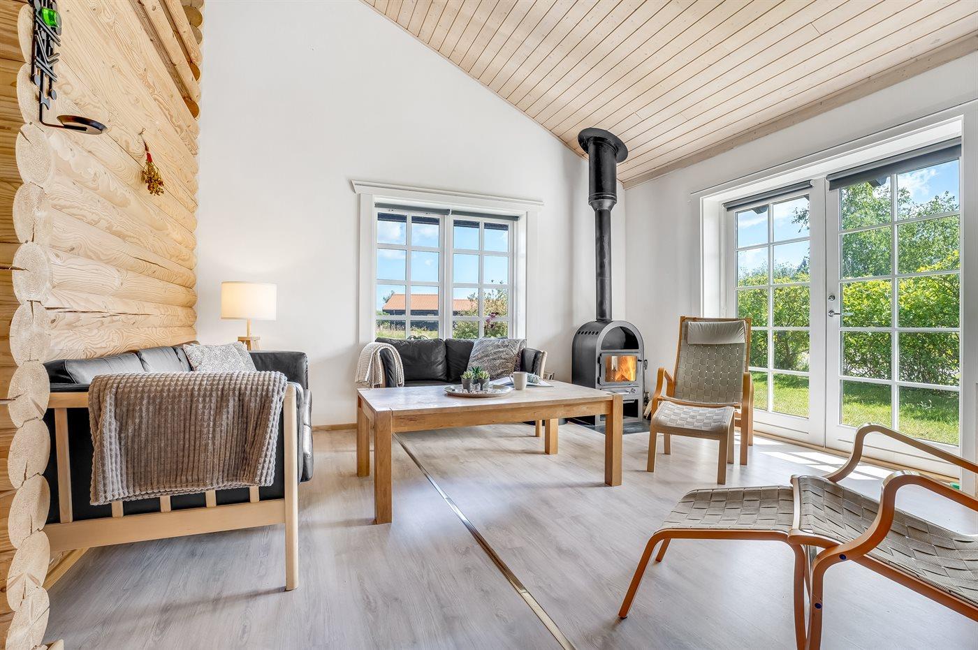 Med en god størrelse på 108 m2 byder dette velbyggede sommerhus på en gennemtænkt planløsning, der sikrer optimal udnyttelse af pladsen alt imens den omhyggelige isolering holder varmeregningen lav. Opvarmningen sker ved hjælp af en varmepumpe, suppleret af en hyggelig brændeovn, gulvvarme på badeværelserne samt el-paneler på værelserne.