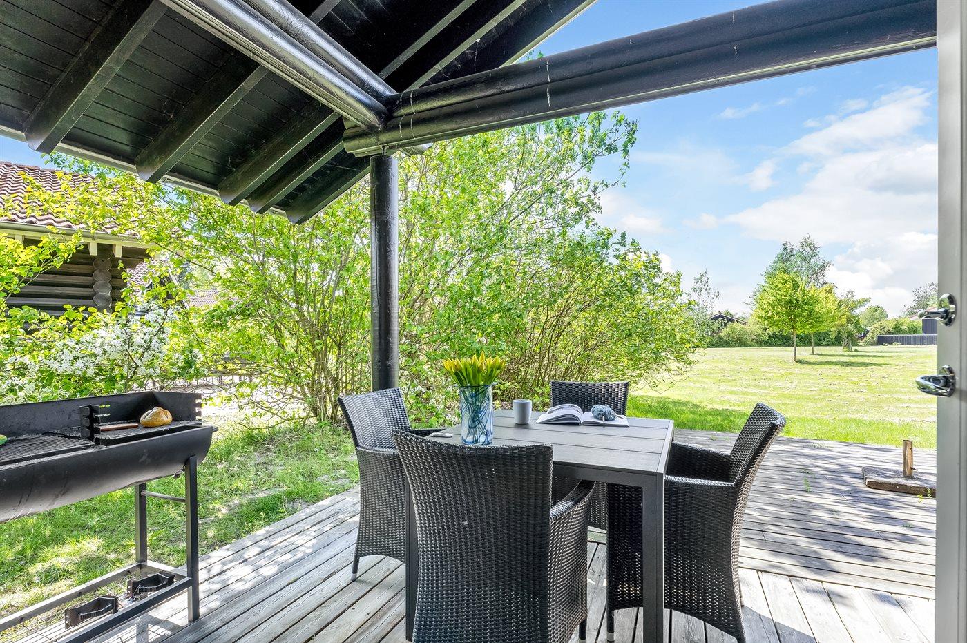 Ferieboligen er beliggende på en 370 m² stor naturgrund. Der er 900 m til havet. Nærmeste forretning er beliggende i en afstand af 400 m. Til ferieboligen hører åbent terrasseareal. Desuden er der overdækket terrasse. Grill til rådighed. Parkering ved ferieboligen.