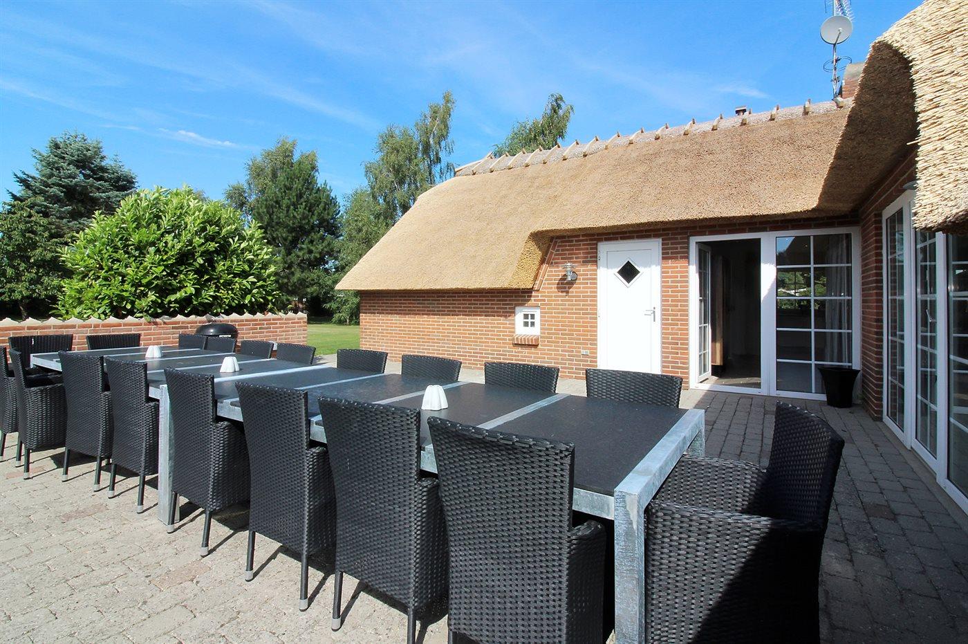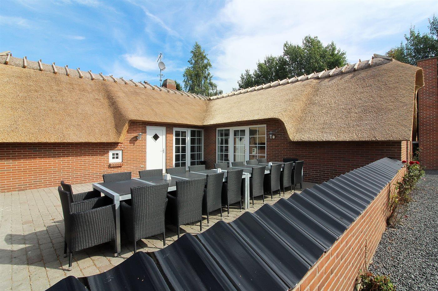 Ferieboligen er beliggende på en 2750 m² stor havegrund. Der er 250 m til havet. Nærmeste forretning er beliggende i en afstand af 1000 m. Til ferieboligen hører 65 m² terrasseareal. Heraf i alt 65 m² lukket terrasse. Gynge. Legetårn. Rutchebane. Fodboldmål. (2 stk. 5-mands-mål). Der er 2 grill til rådighed. Der er installeret stik til opladning af elbil. Type 2 stik. Med 11 kW ladeeffekt. Parkering ved ferieboligen.