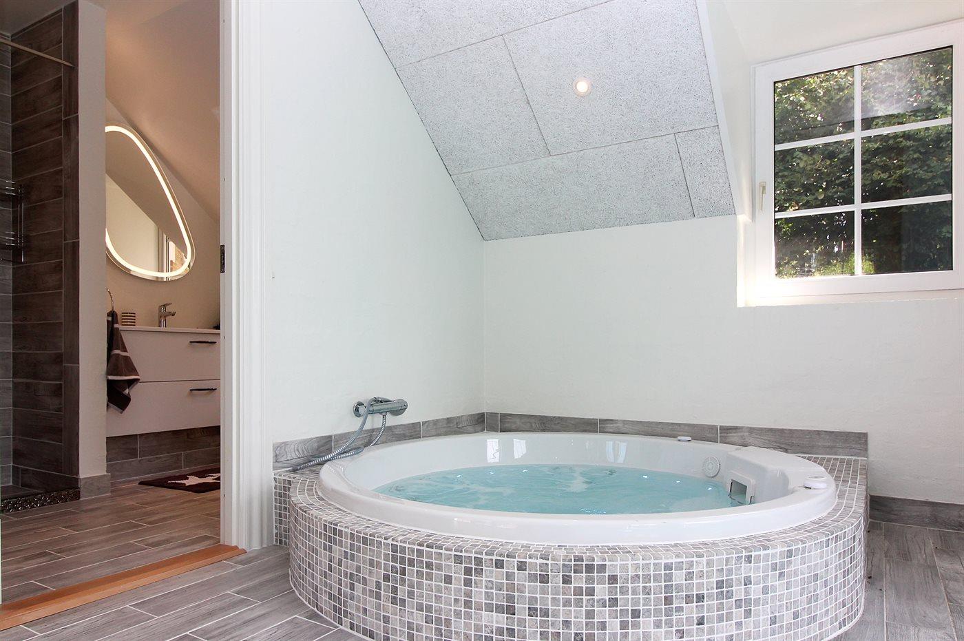 Der er 2 badeværelser med bruseniche og 2 toiletter. Der er gulvvarme på 2 badeværelser. I saunaen er der mulighed for afslapning.