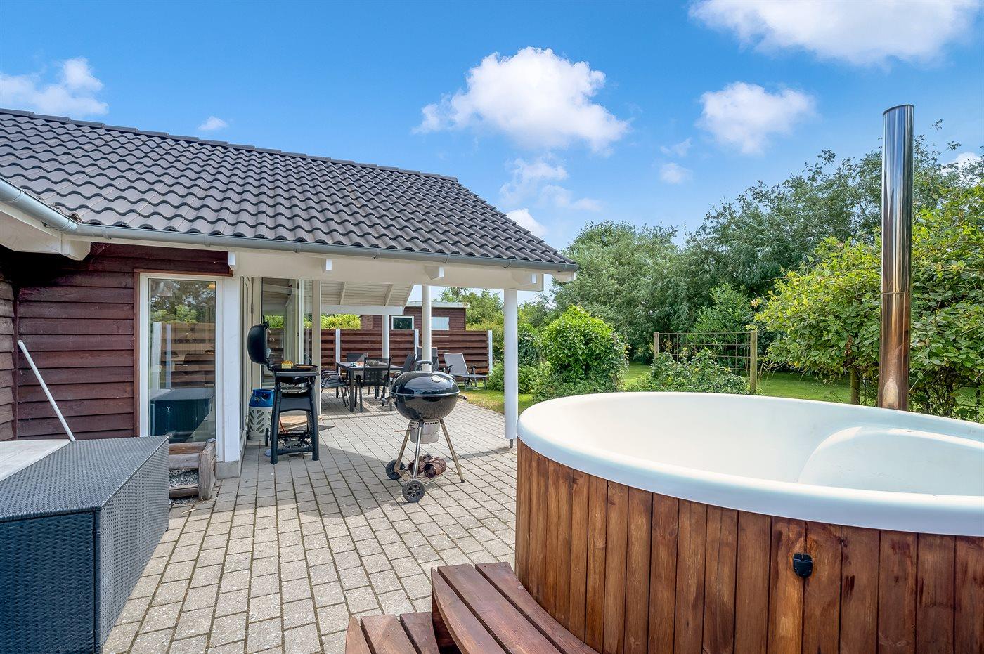 Ferieboligen er beliggende på en 1300 m² stor havegrund. Der er 800 m til havet. Nærmeste forretning er beliggende i en afstand af 500 m. Til ferieboligen hører åbent terrasseareal. Desuden er der overdækket terrasse. Grill til rådighed. Parkering ved ferieboligen.