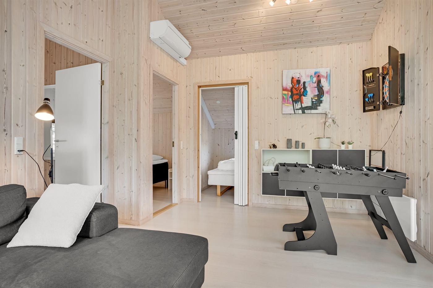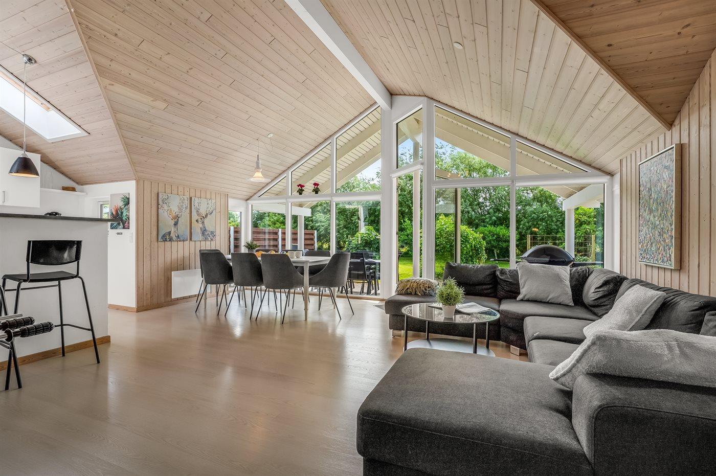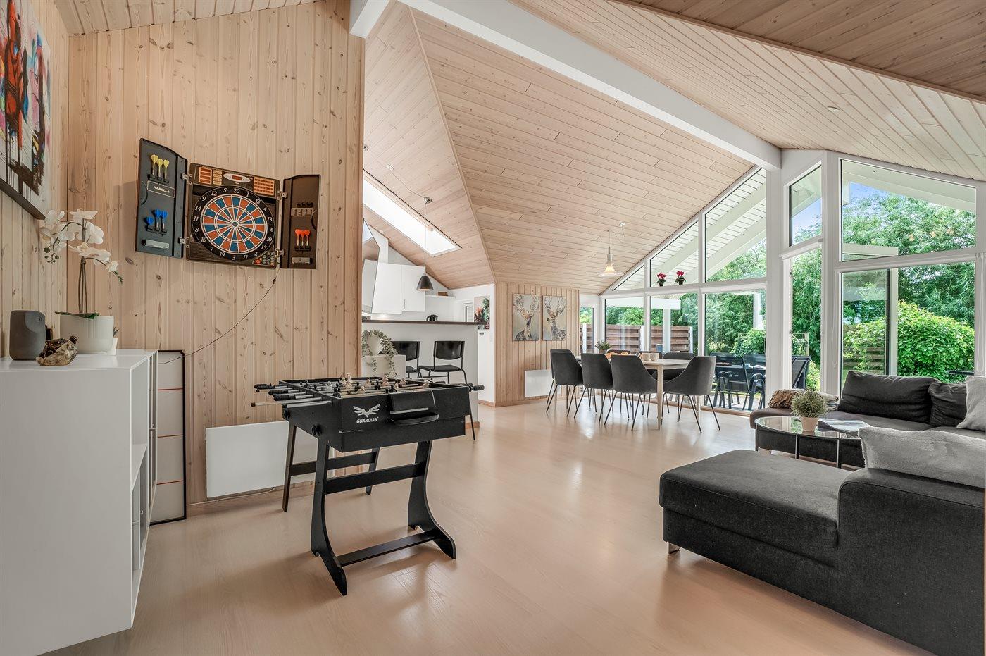 Sommerhuset har et lyst køkken, der er åbent ind til den moderne indrettede og hyggelige stue. Der er tre soveværelser inde i huset - alle med dobbeltsenge. I det store og hyggelige anneks, som I har adgang til via garagen, er der også en dobbeltseng.