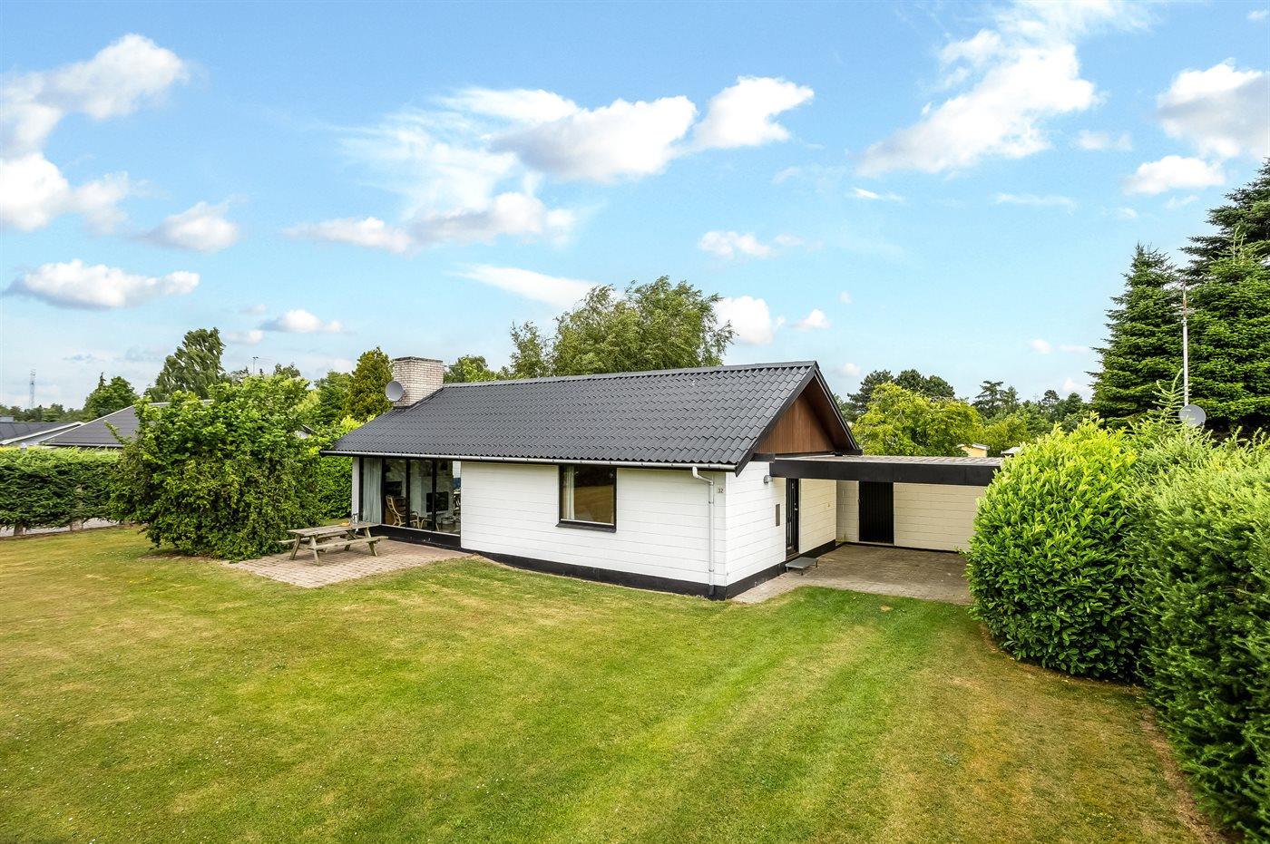 Ferieboligen er beliggende på en 1000 m² stor havegrund. Der er 800 m til havet. Nærmeste forretning er beliggende i en afstand af 800 m. Der er en golfbane i en afstand af 500 m. Til ferieboligen hører åbent terrasseareal. Der er redskabsrum. Grill til rådighed. Der er carport til rådighed. Parkering ved ferieboligen.