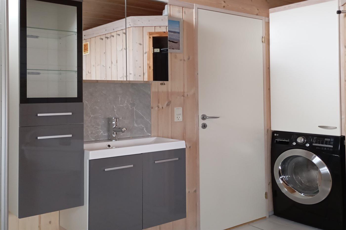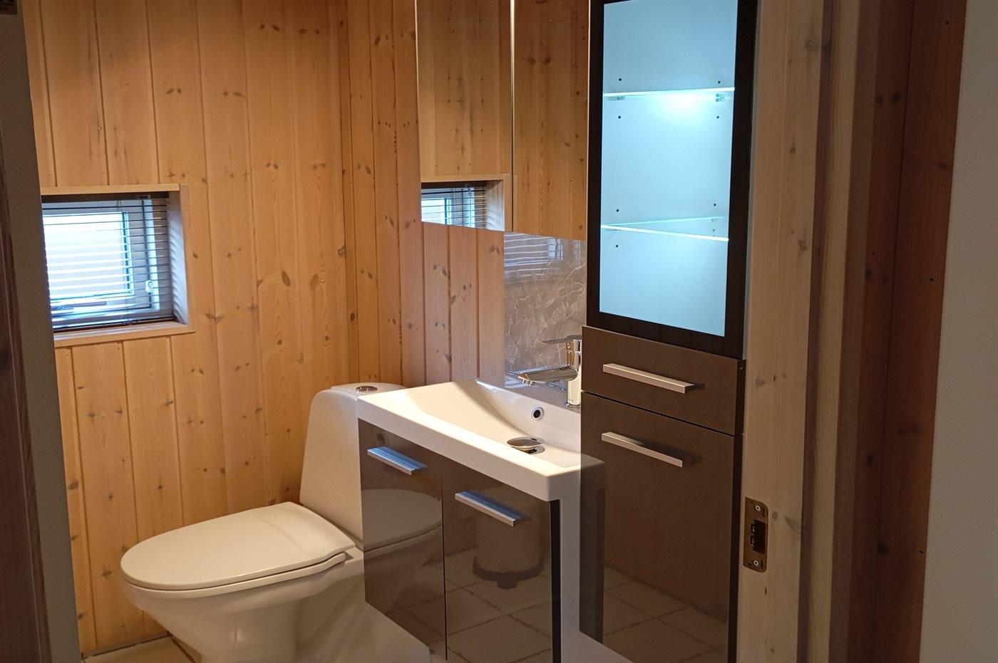 Der er 1 badeværelse med bruseniche og 2 toiletter, heraf 1 gæstetoilet. Der er gulvvarme på 1 badeværelse. I saunaen er der mulighed for afslapning.