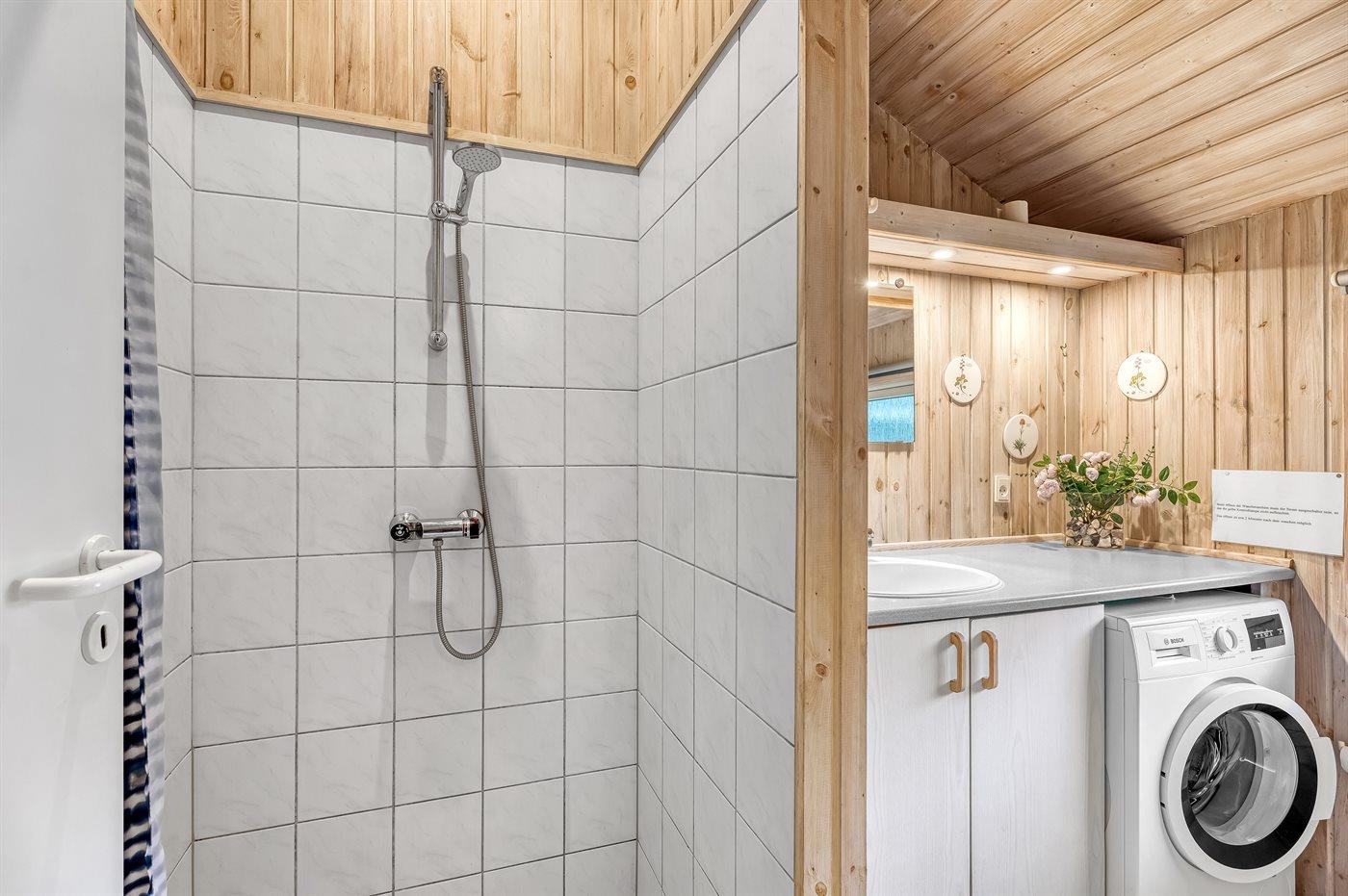 Der er 1 badeværelse med bruseniche og 2 toiletter, heraf 1 gæstetoilet. Der er gulvvarme på 1 badeværelse. I saunaen er der mulighed for afslapning.