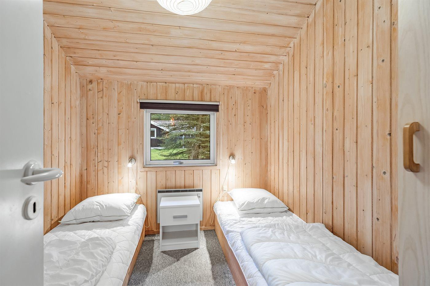 Der er i alt 3 soveværelser. Sovepladserne fordeler sig på: 2 sovepladser i dobbeltseng. 4 sovepladser i enkeltsenge. 2 sovepladser i alkove. 2 af disse sovepladser befinder sig i stuen. Derudover er der 1 stk. barneseng.