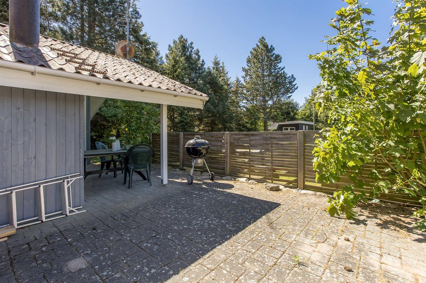 Ferieboligen er beliggende på en 1000 m² stor naturgrund. Der er 80 m til havet. Nærmeste forretning er beliggende i en afstand af 500 m. Til ferieboligen hører 20 m² terrasseareal. Desuden er der 8 m² overdækket terrasse. Sandkasse. Parkering ved ferieboligen.
