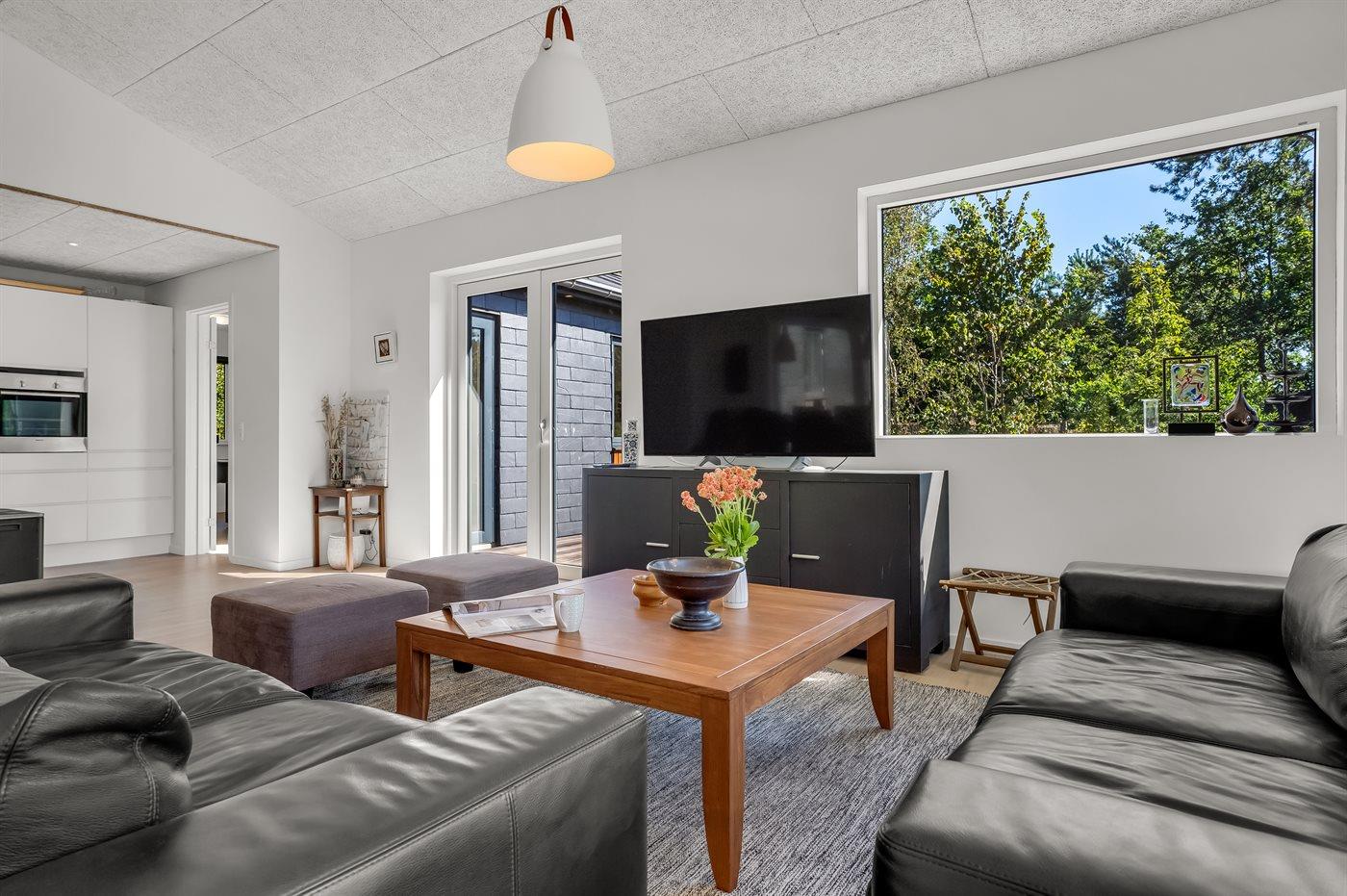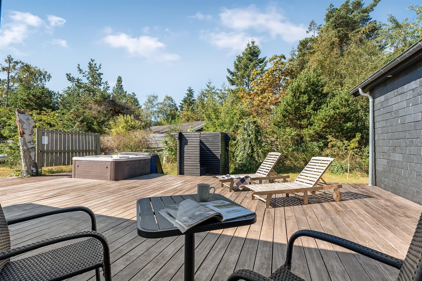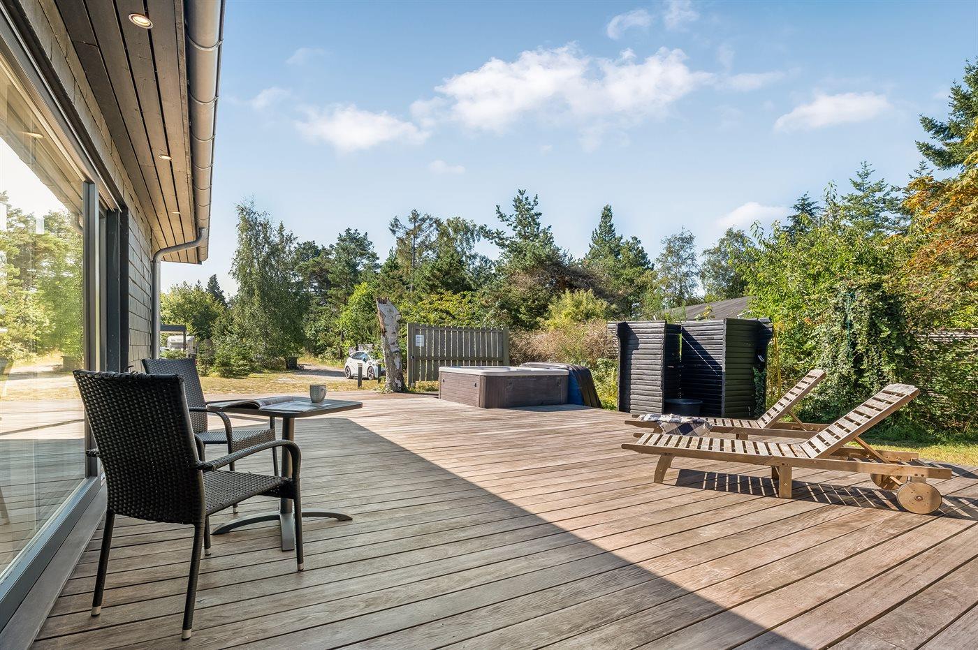 Fra stuen er der flere udgange til de fantastiske træterrasser, der inviterer til hygge, sol, skygge og hyggelige grillaftener med familien eller i gode venners lag. Her finder I bl.a. et udendørs spabad og en udendørs bruser, som I kan benytte efter en morgendukkert i Østersøen.