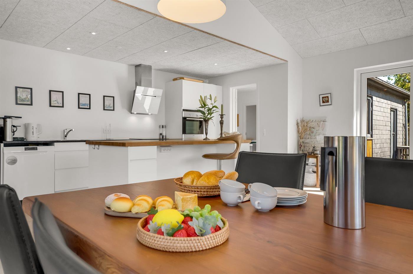 Køkkenet er udstyret med 1 køleskab. Der er 4 induktionskogeplader, varmluftovn, mikrobølgeovn samt opvaskemaskine.