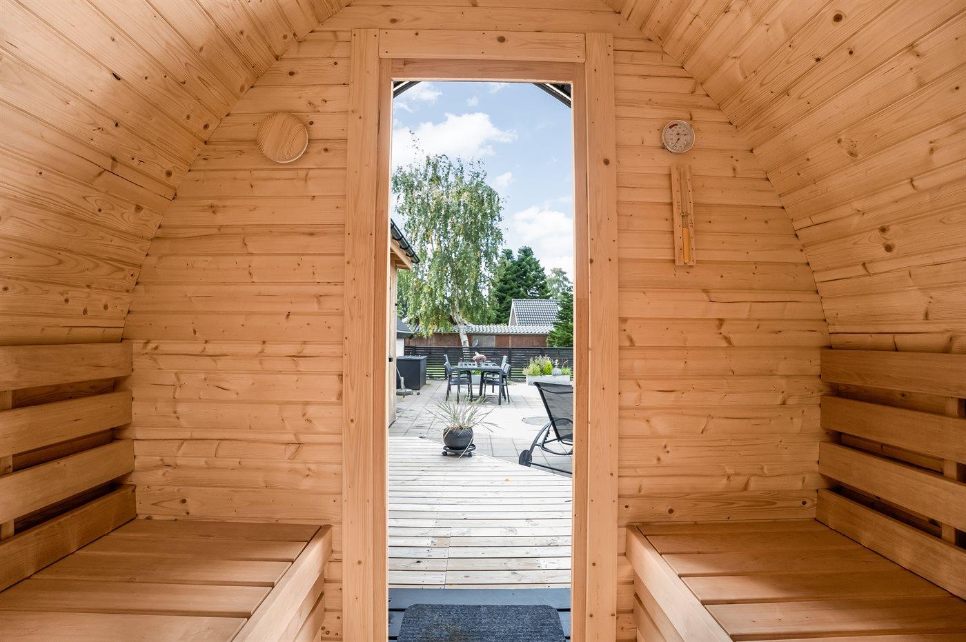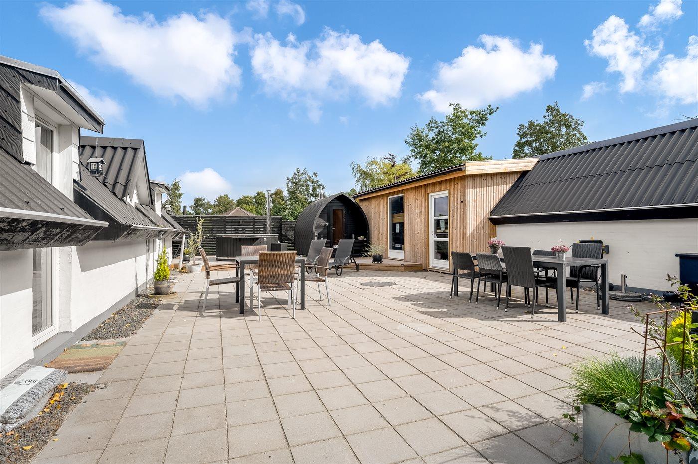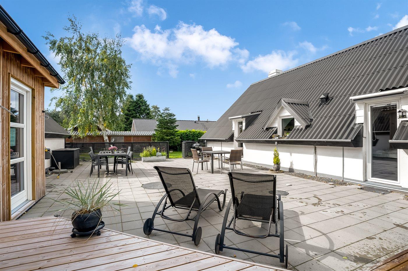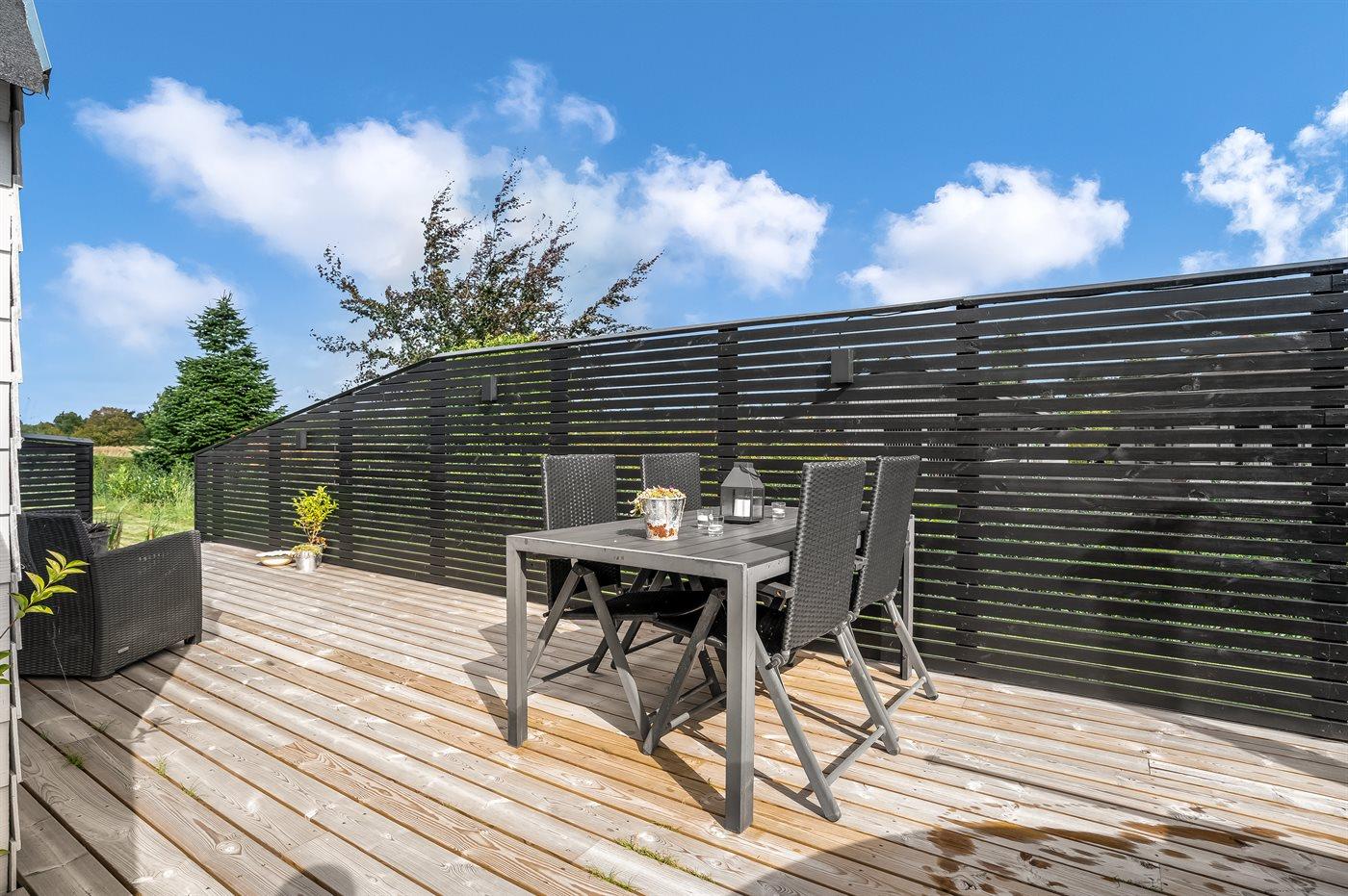 Ferieboligen er beliggende på en 1122 m² stor havegrund. Grunden er indhegnet. Der er 650 m til havet. Nærmeste forretning er beliggende i en afstand af 1000 m. Der er en golfbane i en afstand af 4000 m. Til ferieboligen hører åbent terrasseareal. Desuden er der overdækket terrasse. Udgang til altan. Trampolin. Bålsted. Udendørs sauna. Grill til rådighed. Der er installeret stik til opladning af elbil. Type 2 stik. Med 11 kW ladeeffekt. Parkering ved ferieboligen.