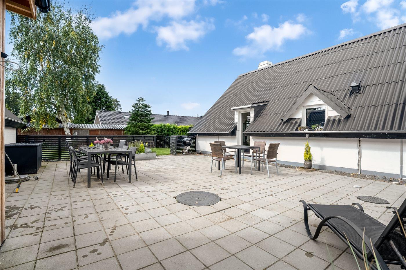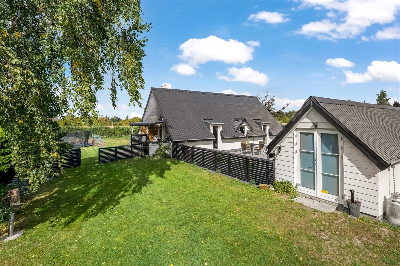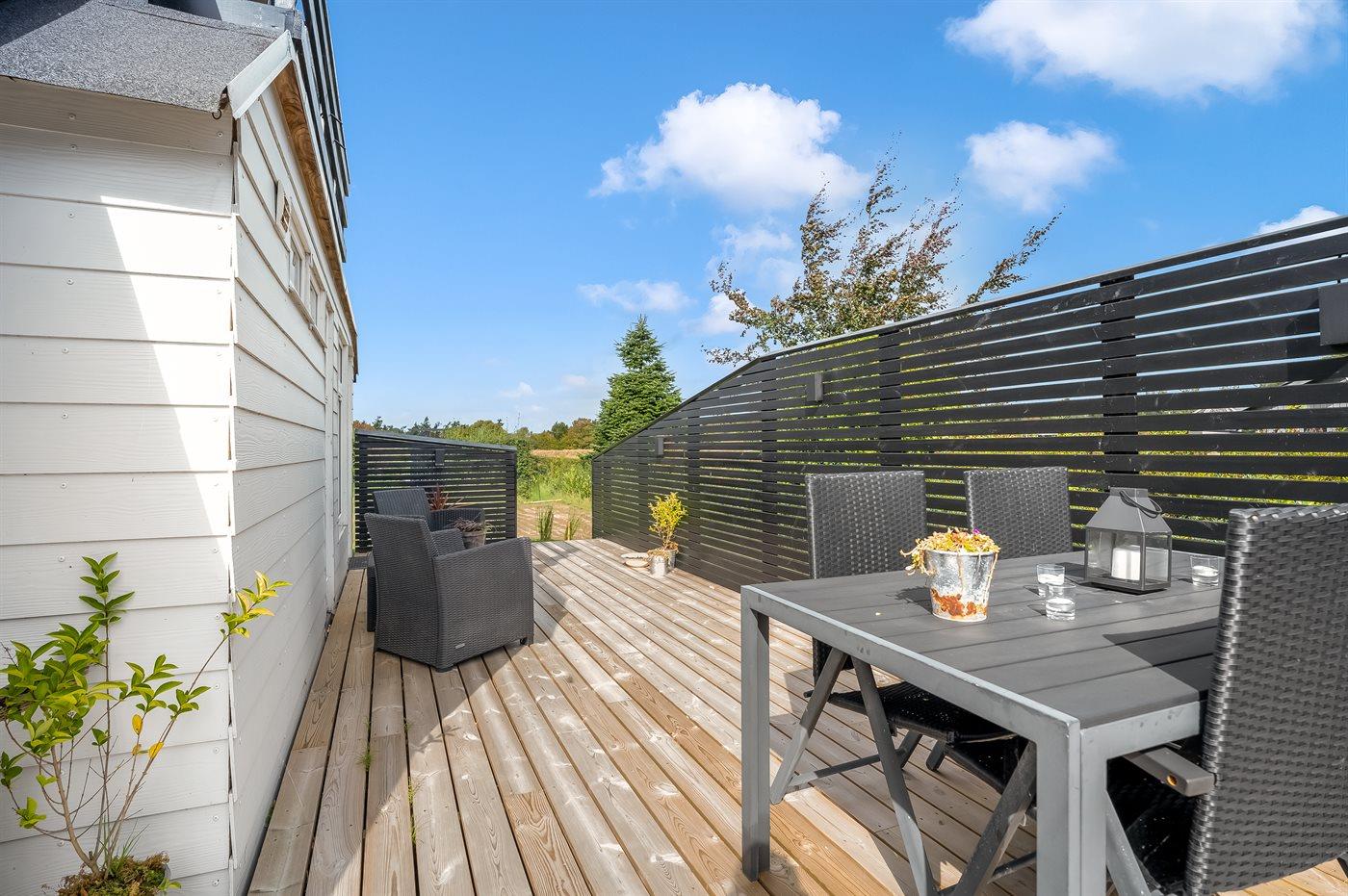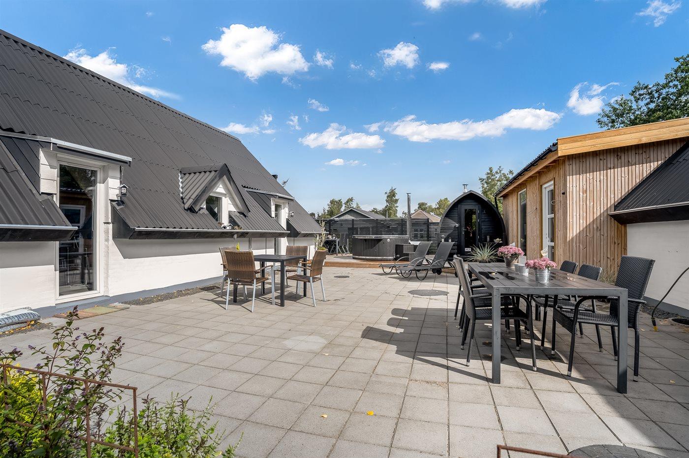 Ferieboligen er beliggende på en 1122 m² stor havegrund. Grunden er indhegnet. Der er 650 m til havet. Nærmeste forretning er beliggende i en afstand af 1000 m. Der er en golfbane i en afstand af 4000 m. Til ferieboligen hører åbent terrasseareal. Desuden er der overdækket terrasse. Udgang til altan. Trampolin. Bålsted. Udendørs sauna. Grill til rådighed. Der er installeret stik til opladning af elbil. Type 2 stik. Med 11 kW ladeeffekt. Parkering ved ferieboligen.