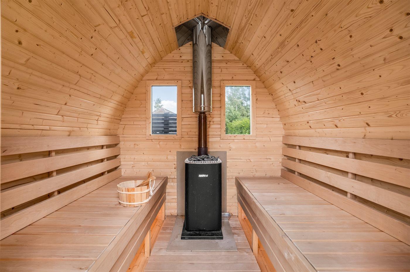 Der er mulighed for afslapning i det udendørs vildmarkskar til 6 personer.