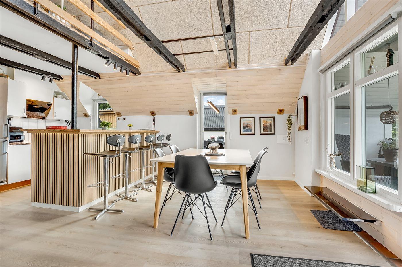 Køkkenet er udstyret med 1 køleskab. Der er 4 keramiske kogeplader, varmluftovn, mikrobølgeovn samt opvaskemaskine.