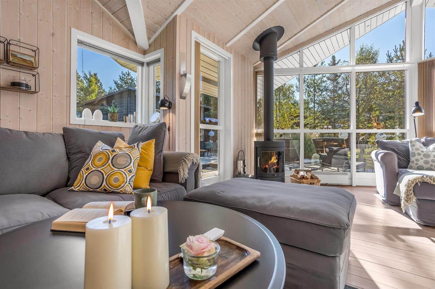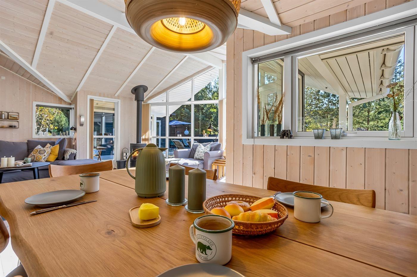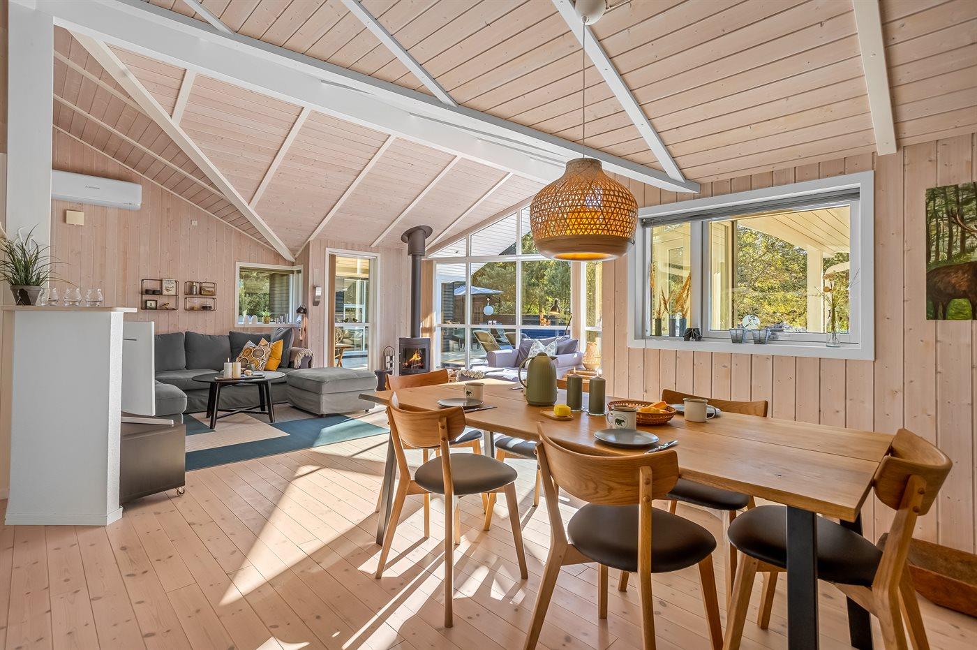 Huset er indrettet med et stort og indbydende køkken-alrum, hvor man straks føler sig hjemme. De mange store vinduer lader lyset strømme ind og skaber en varm og hyggelig atmosfære.