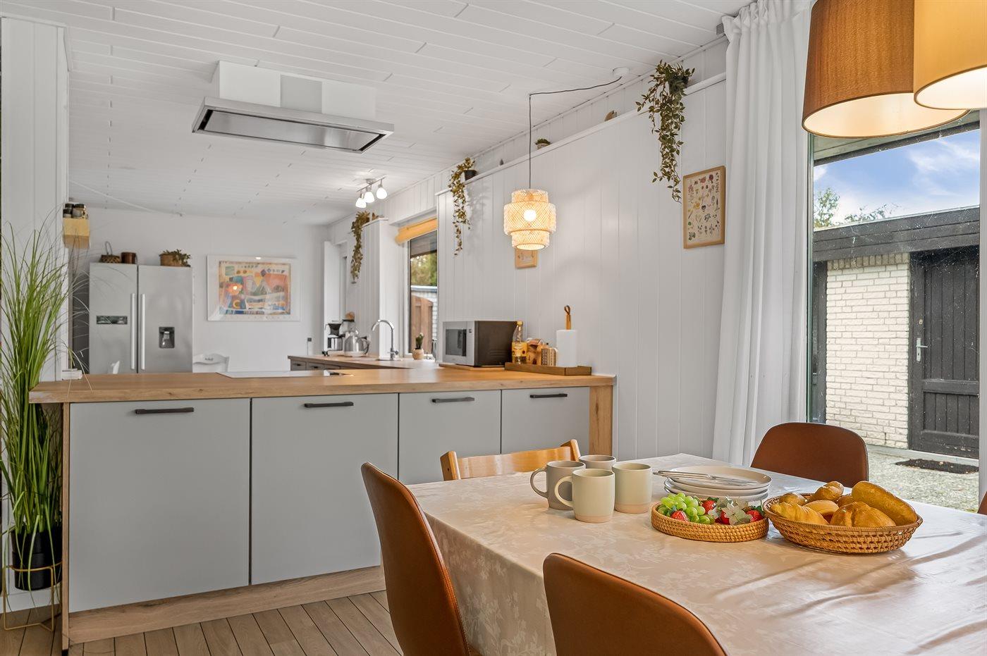 Køkkenet er udstyret med 1 amerikansk køleskab. Der er 4 induktionskogeplader, varmluftovn, mikrobølgeovn samt opvaskemaskine Der er gulvvarme i køkkenet.