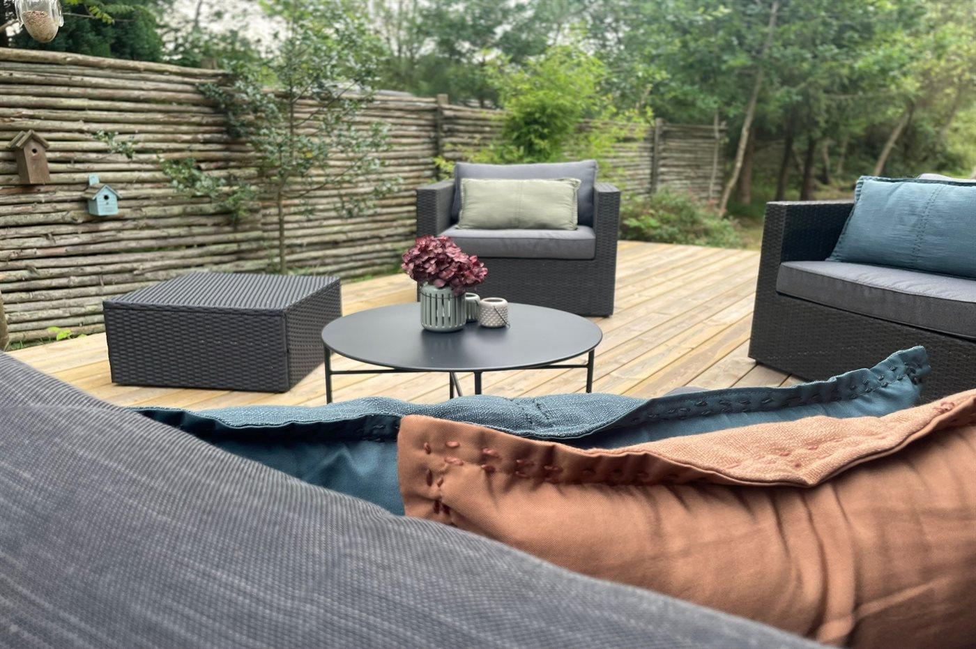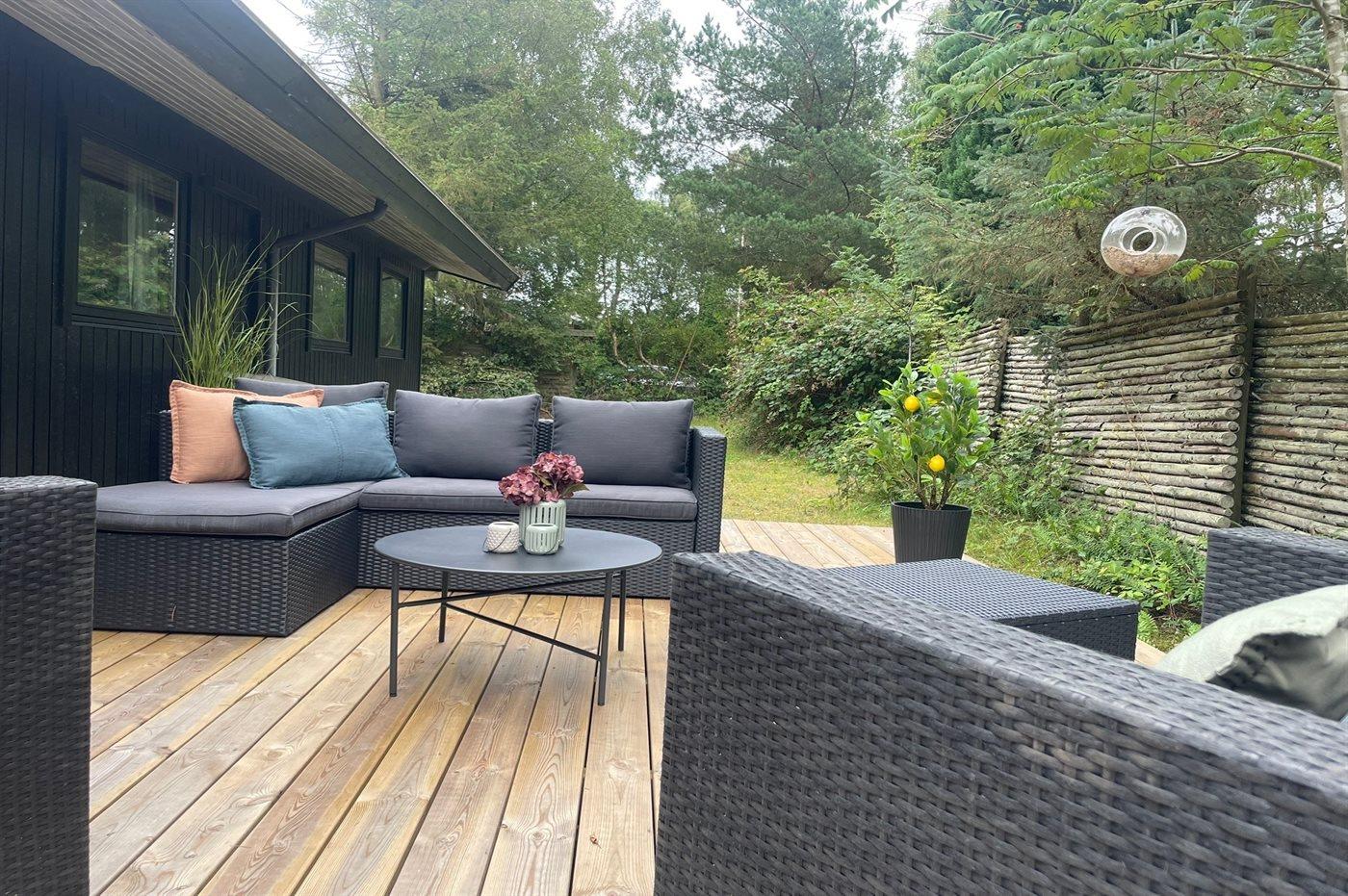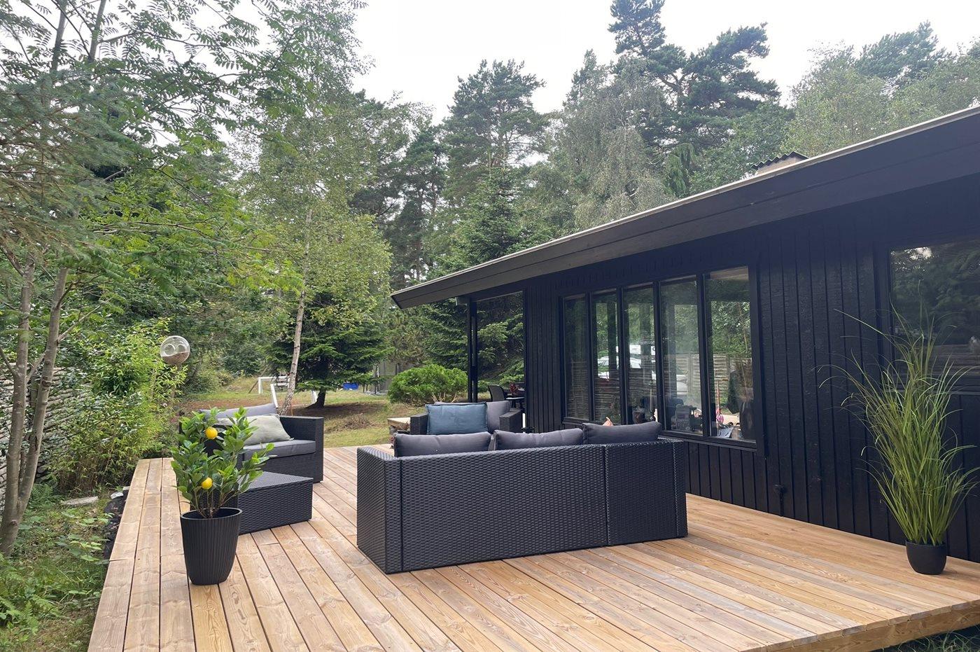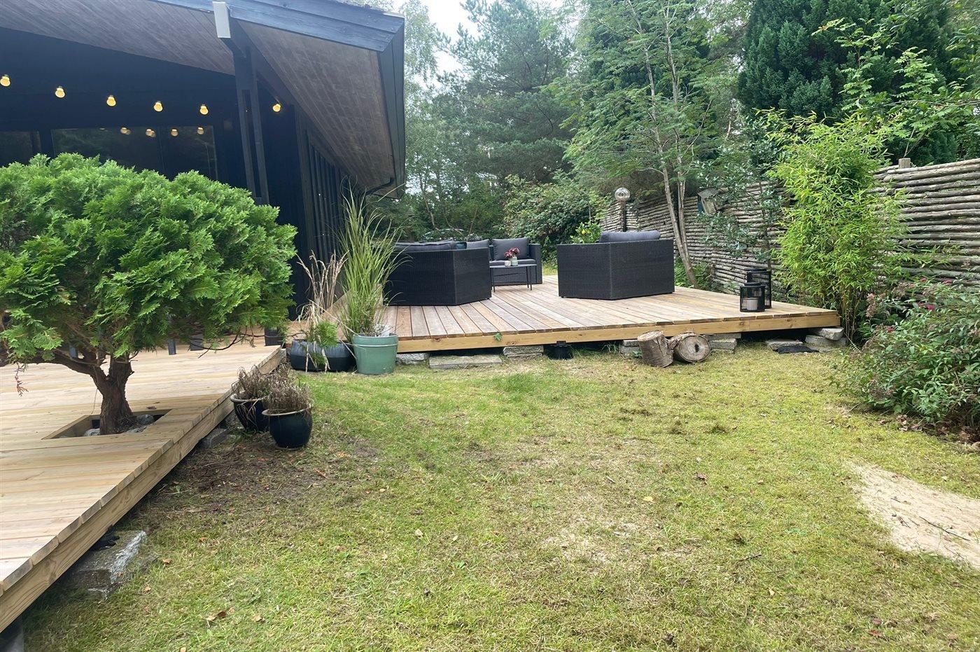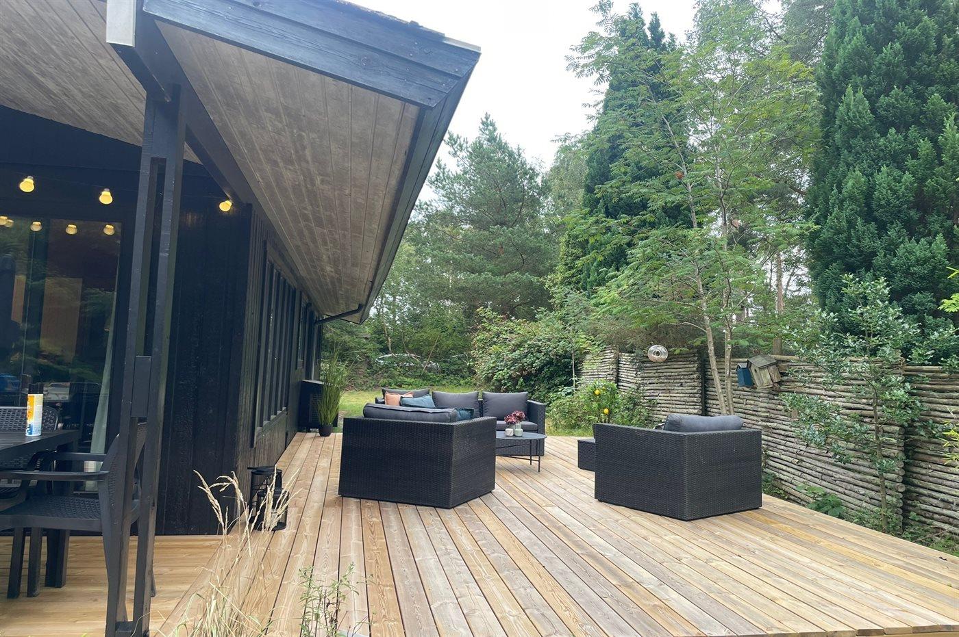 Til huset hører en dejlig træterrasse med masser af plads til timer i det fri med lounge møbler og grill.