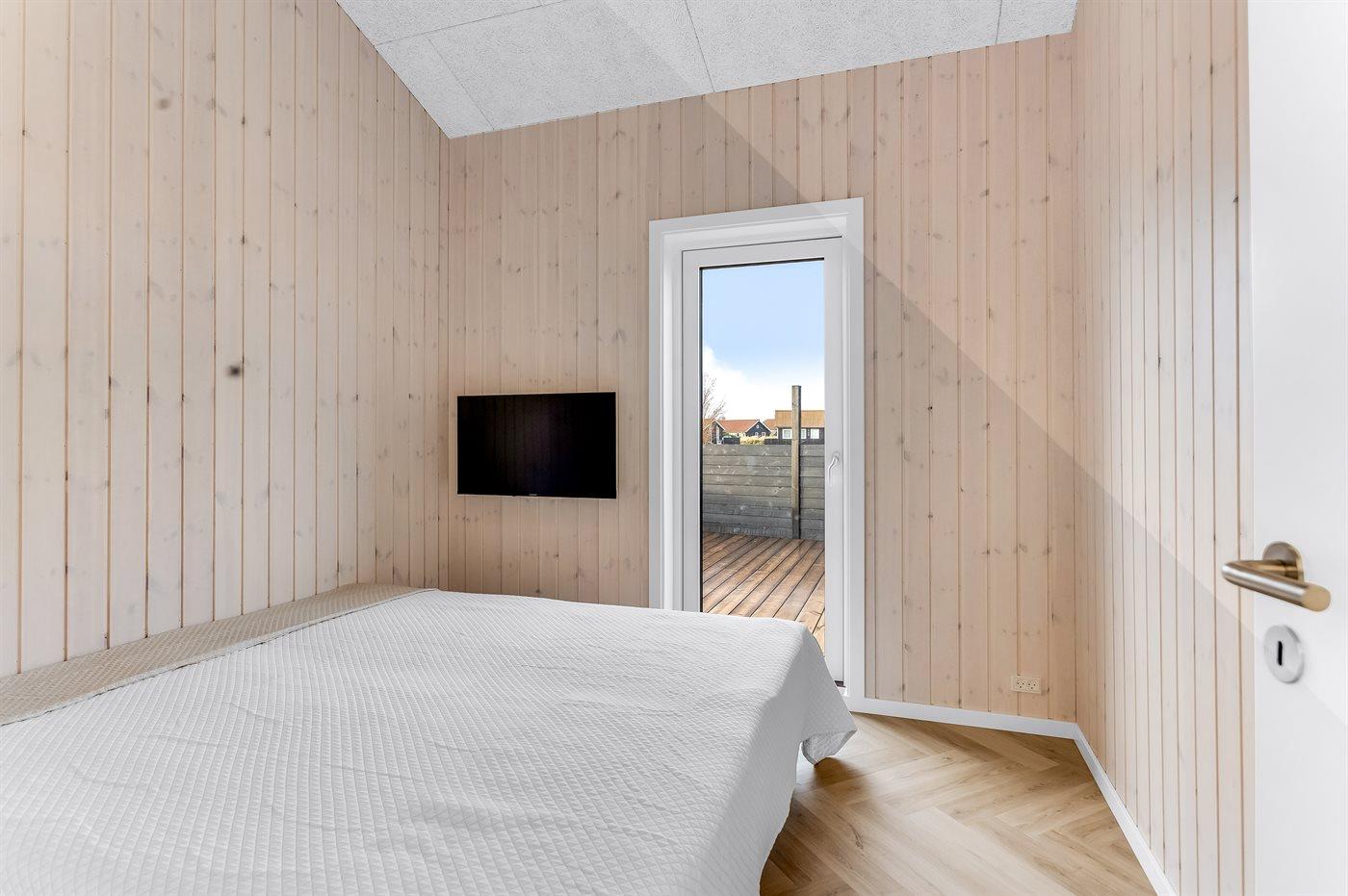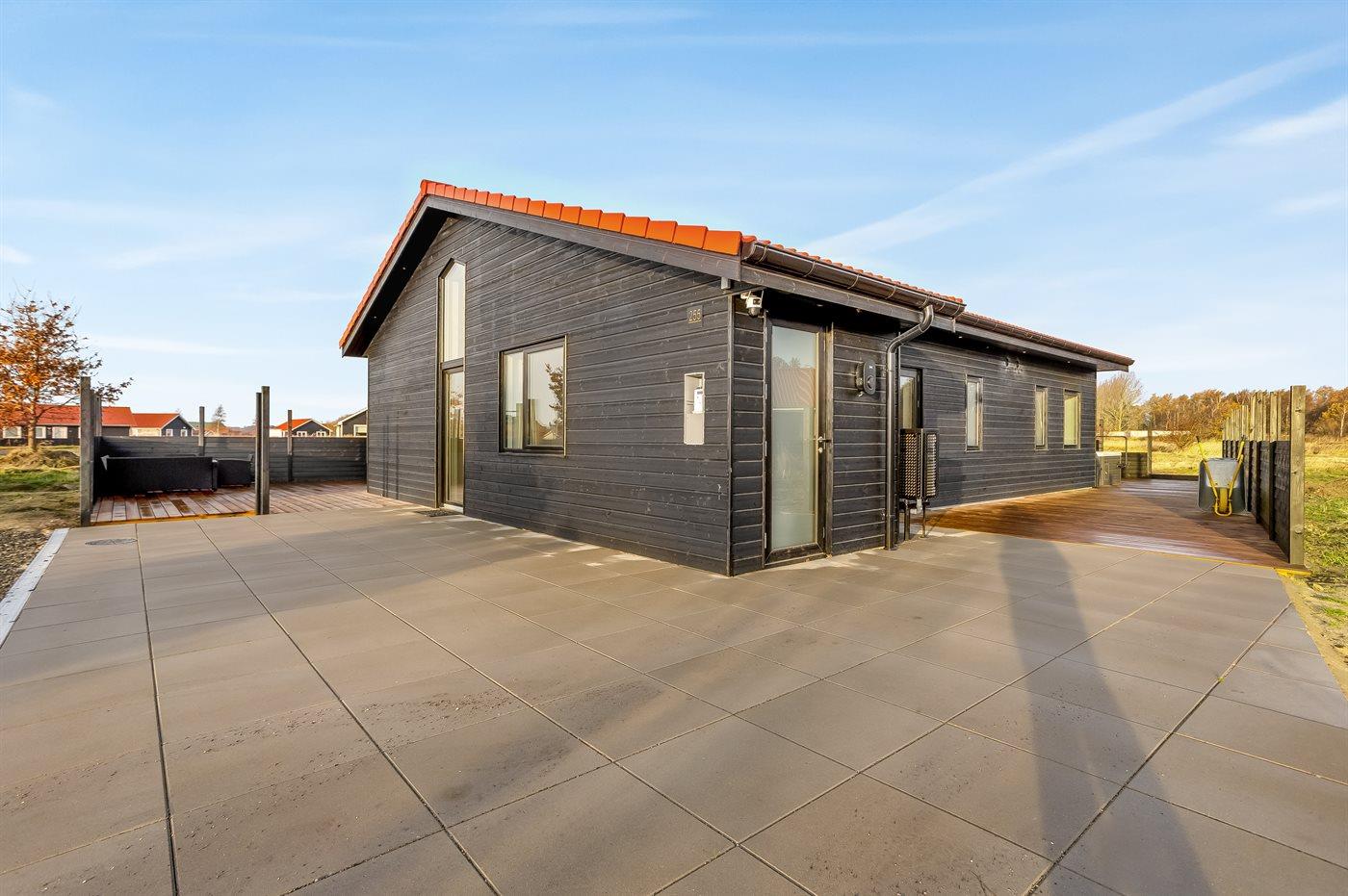 Ferieboligen er beliggende på en 375 m² stor naturgrund. Der er 1200 m til havet. Nærmeste forretning er beliggende i en afstand af 800 m. Til ferieboligen hører åbent terrasseareal. Desuden er der overdækket terrasse. Udendørs sauna. Udendørs bruser. Grill til rådighed. Der er installeret stik til opladning af elbil. Type 2 stik. Med 11 kW ladeeffekt. Parkering ved ferieboligen.