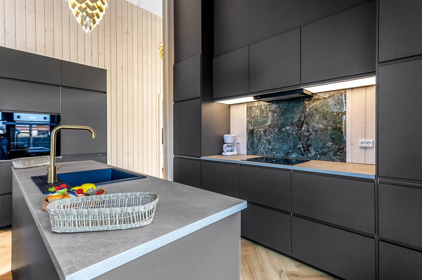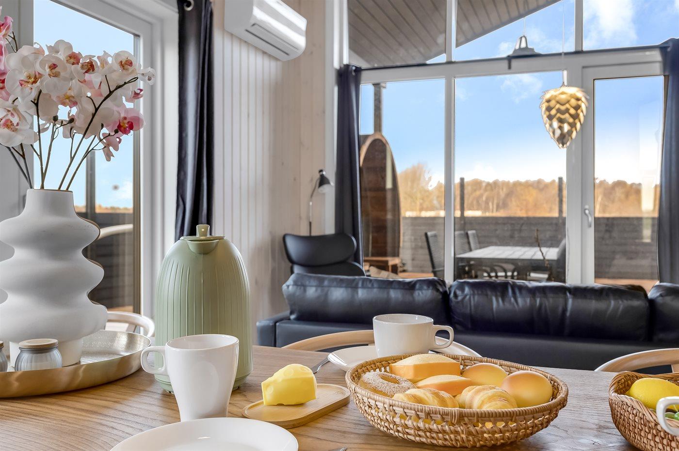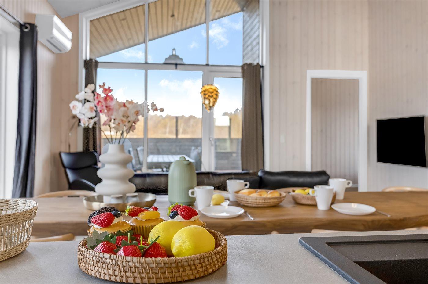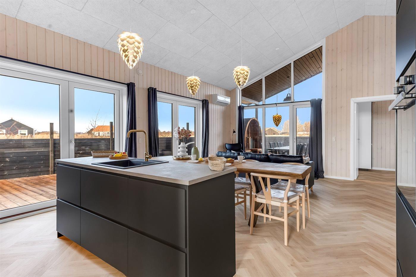 Køkkenet er udstyret med 1 køleskab. Der er 4 induktionskogeplader, varmluftovn, mikrobølgeovn, Airfryer samt opvaskemaskine.