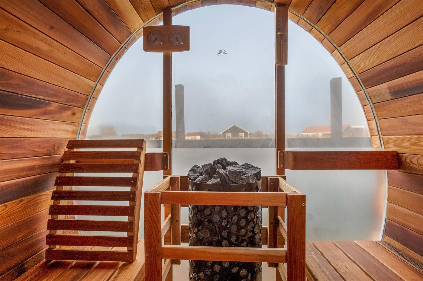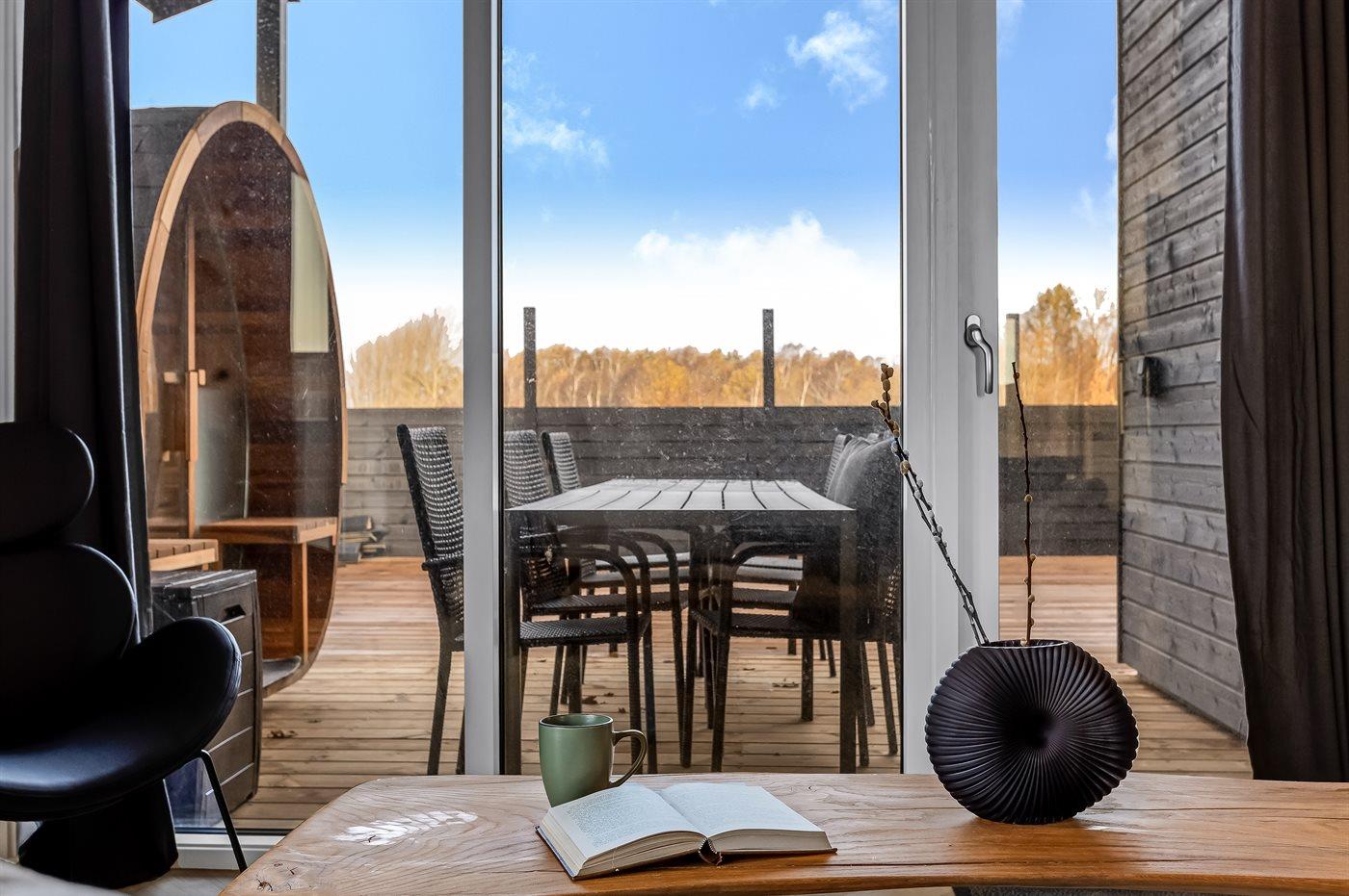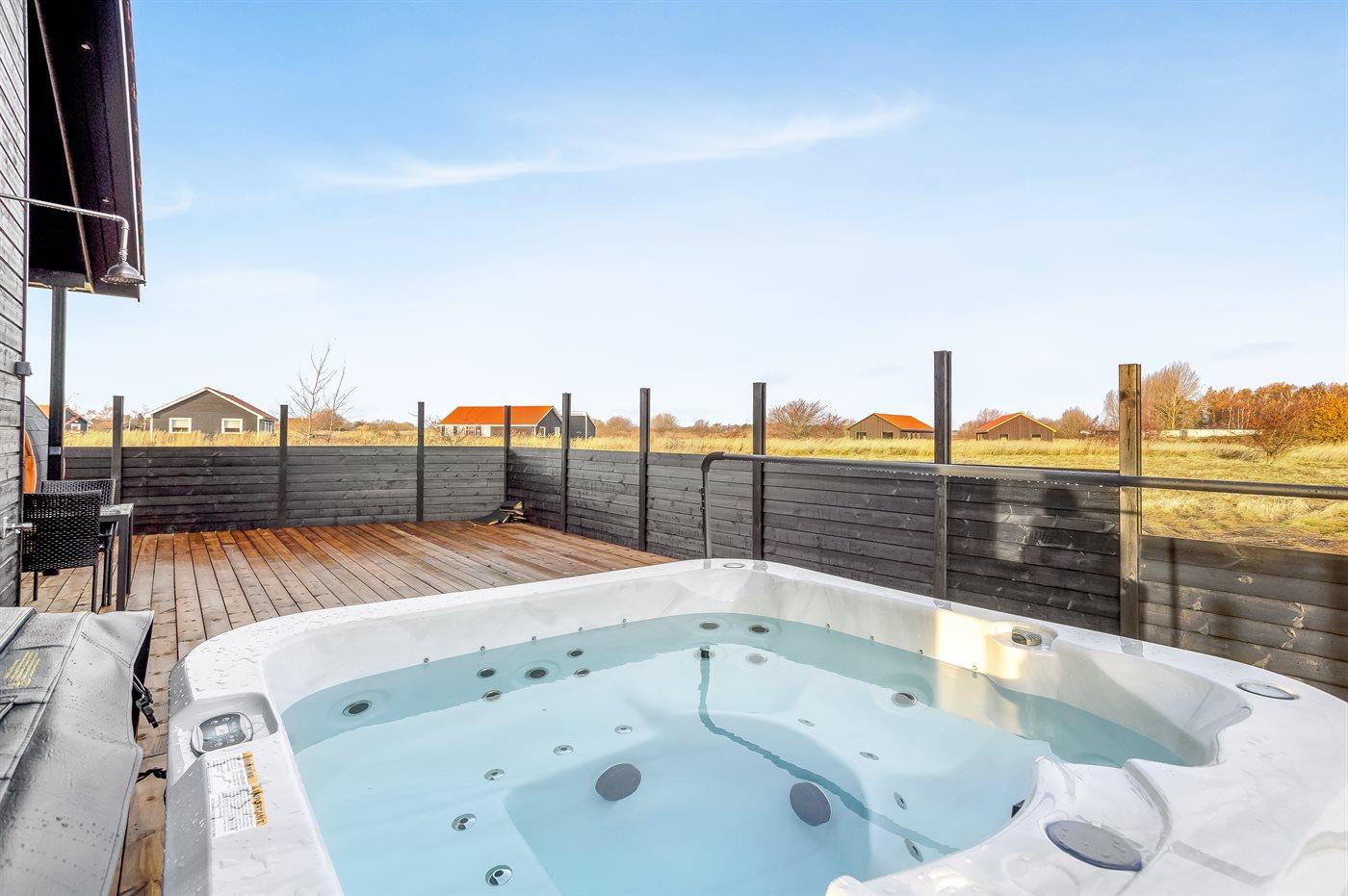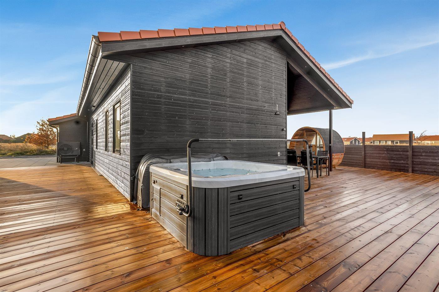 Dejligt nybygget hus (2025) med stor udendørs standvandsspa og udendørs saunatønde.