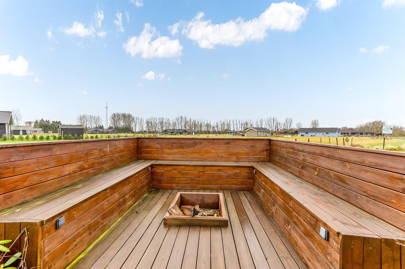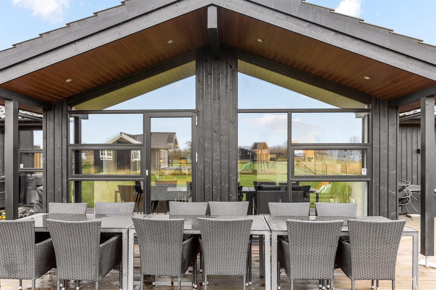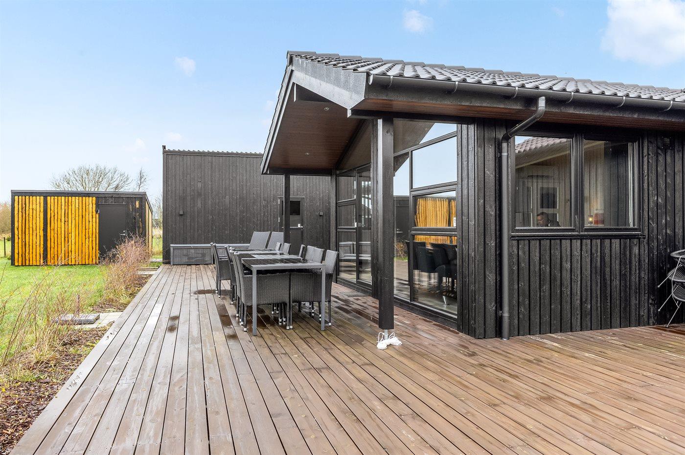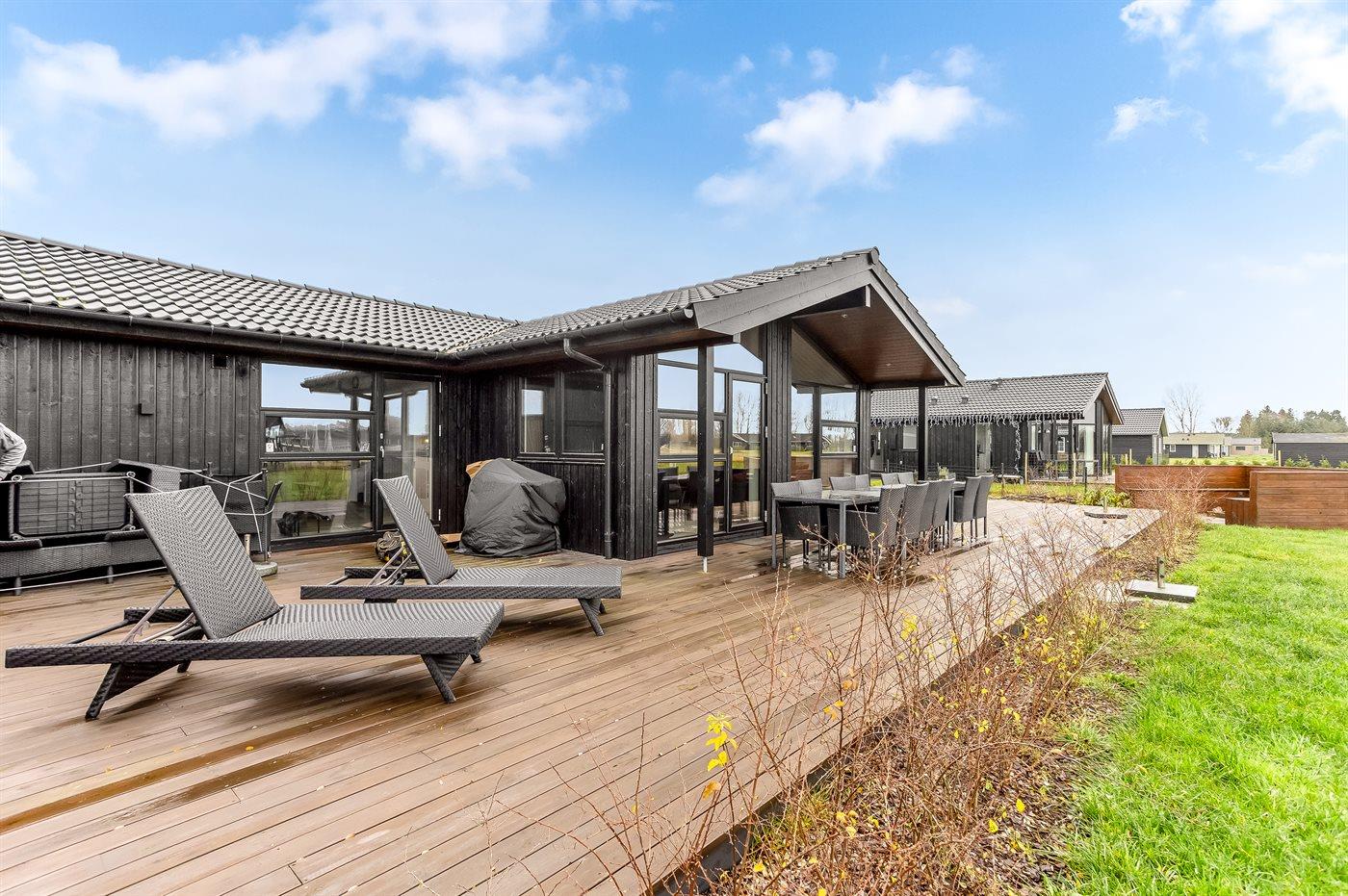 Ferieboligen er beliggende på en 1200 m² stor havegrund. Grunden er indhegnet. Der er 900 m til havet. Nærmeste forretning er beliggende i en afstand af 800 m. Der er en golfbane i en afstand af 1500 m. Til ferieboligen hører åbent terrasseareal. Desuden er der overdækket terrasse. Trampolin. Der ligger en legeplads i en afstand af 800 m. Bålsted. Udendørs bruser. Grill til rådighed. Parkering ved ferieboligen.