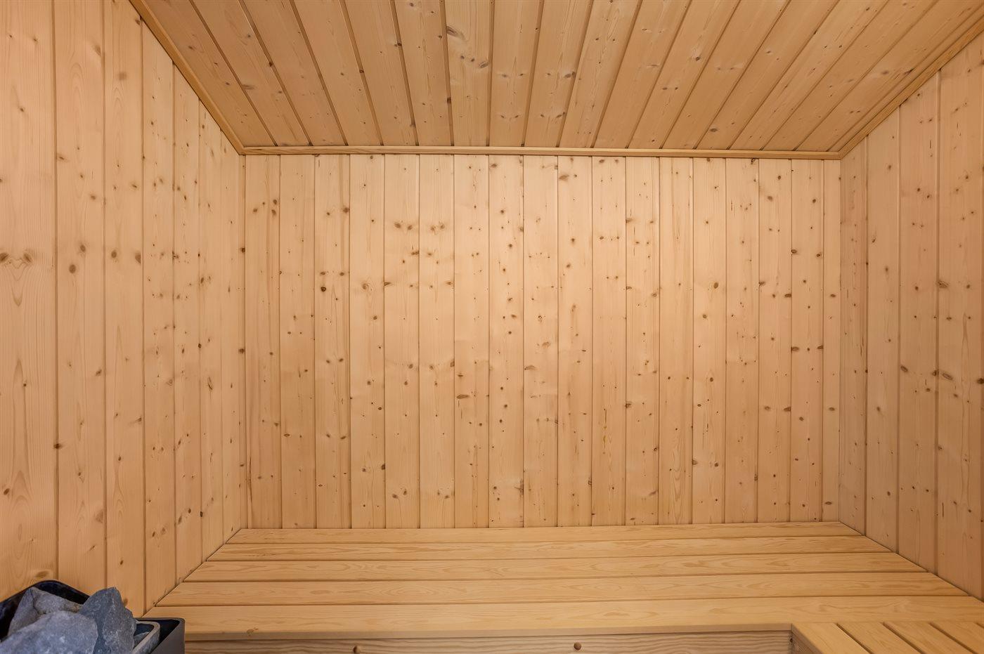 Der er 2 badeværelser med bruseniche og 2 toiletter. Der er gulvvarme på 2 badeværelser.. Badekar. I saunaen er der mulighed for afslapning.